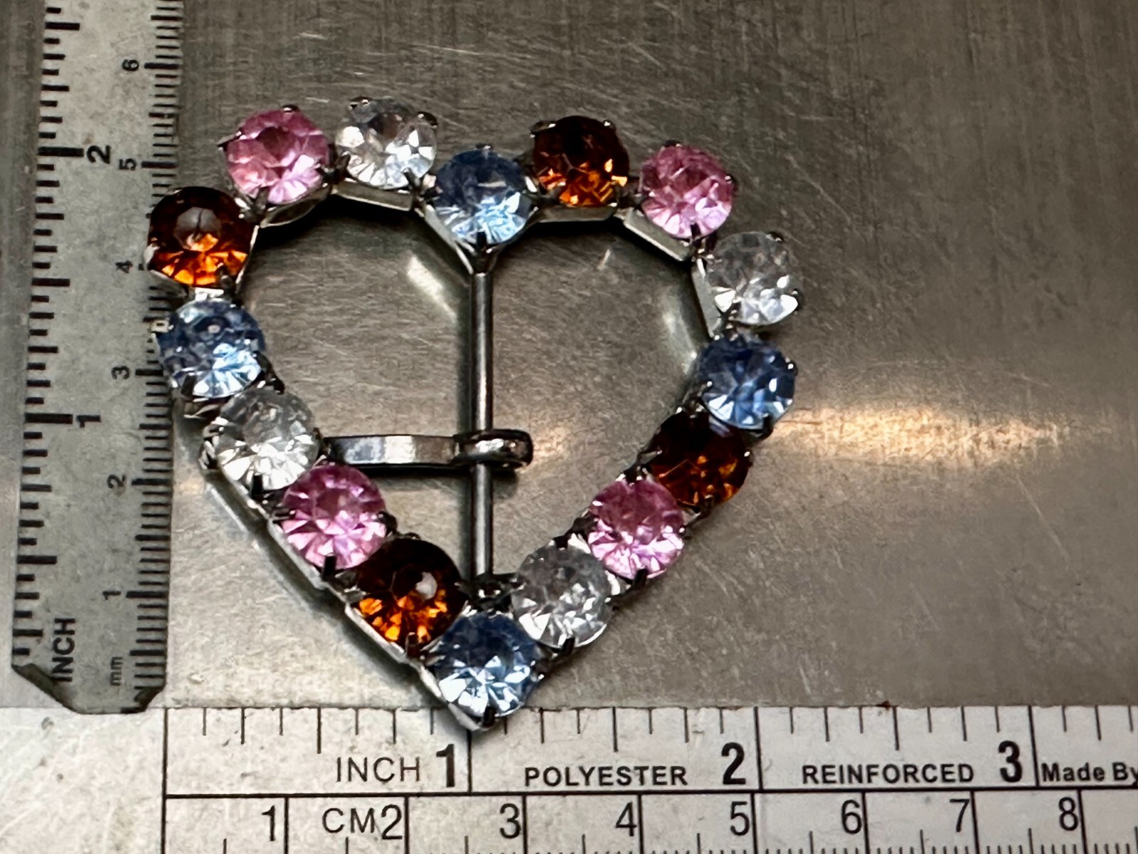 как выглядит Small Heart Shaped Silver Tone Belt Buckle Covered With Mixed Color Rhinestone фото