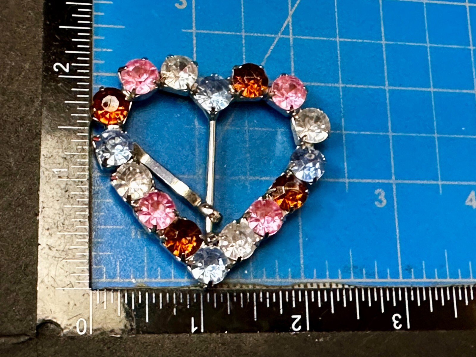 Small Heart Shaped Silver Tone Belt Buckle Covered With Mixed Color Rhinestone
