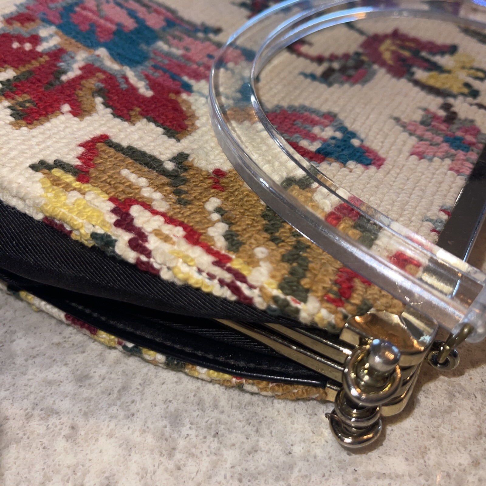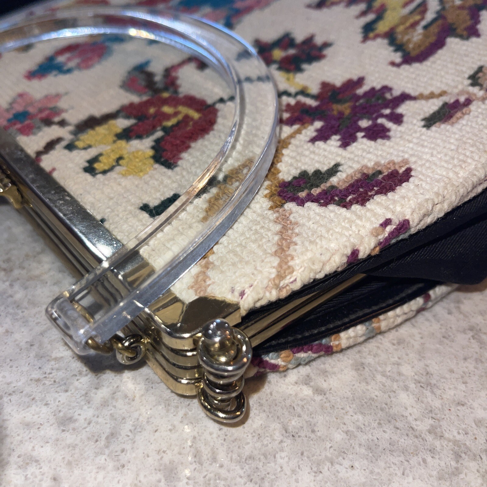 как выглядит Vintage Floral Needlepoint Hand Bag Purse Flowers Granny Core фото