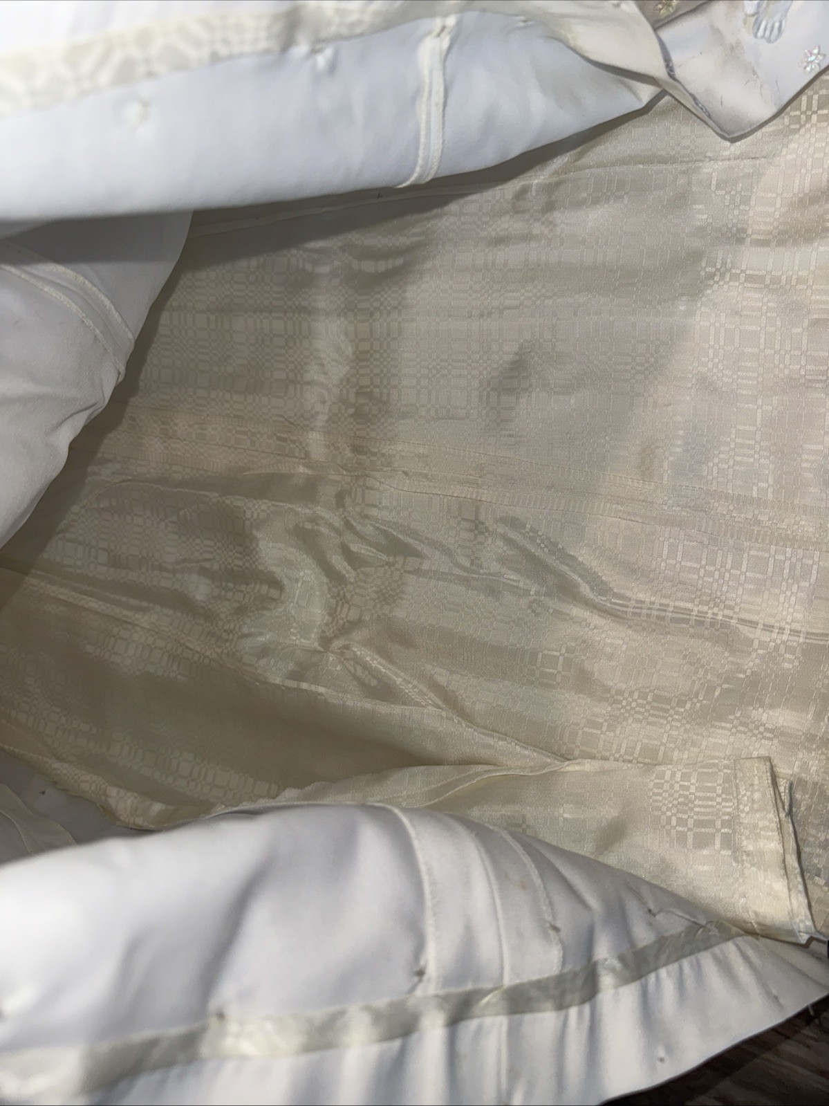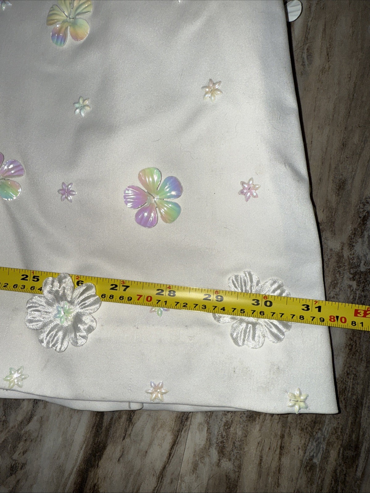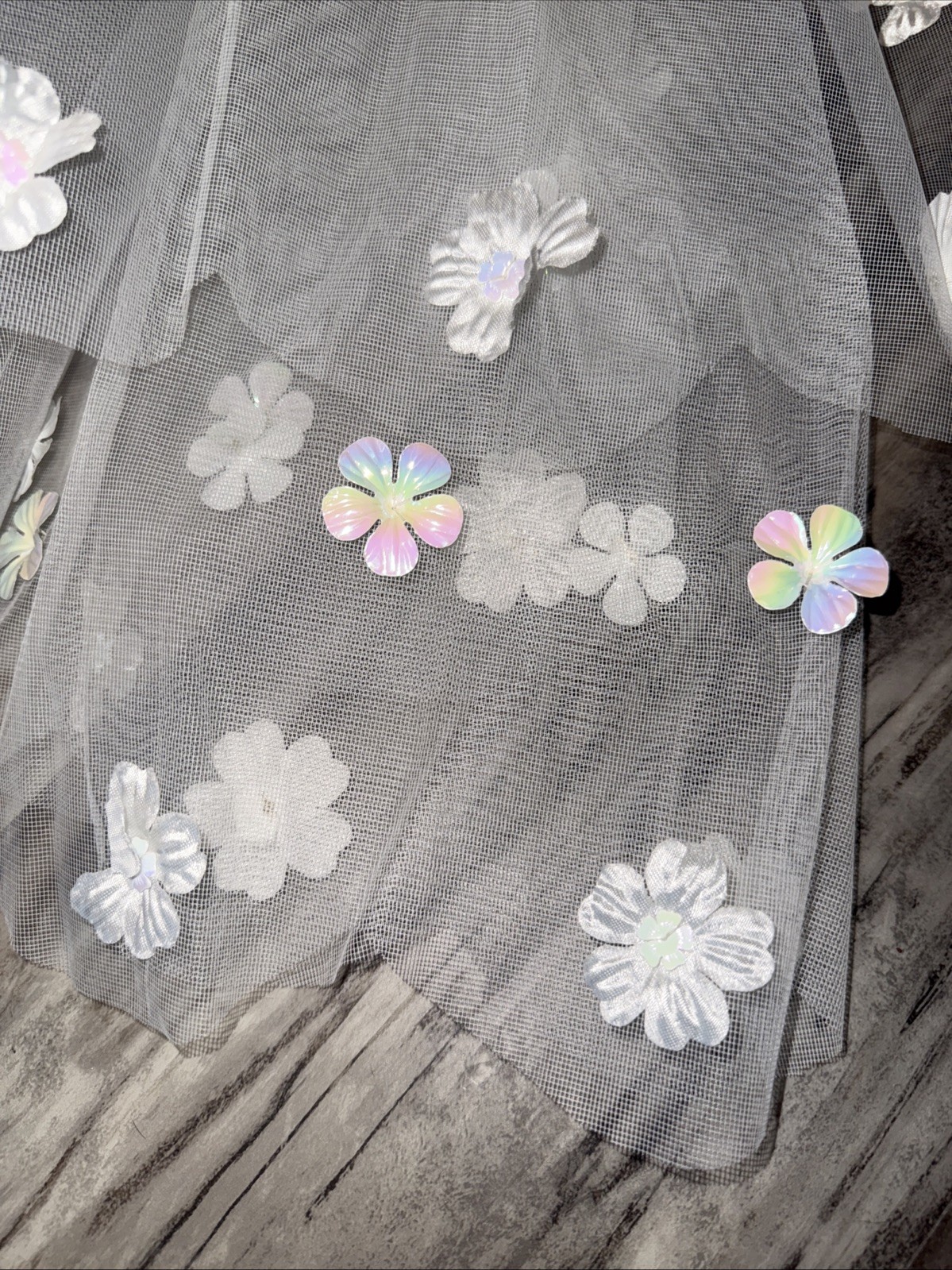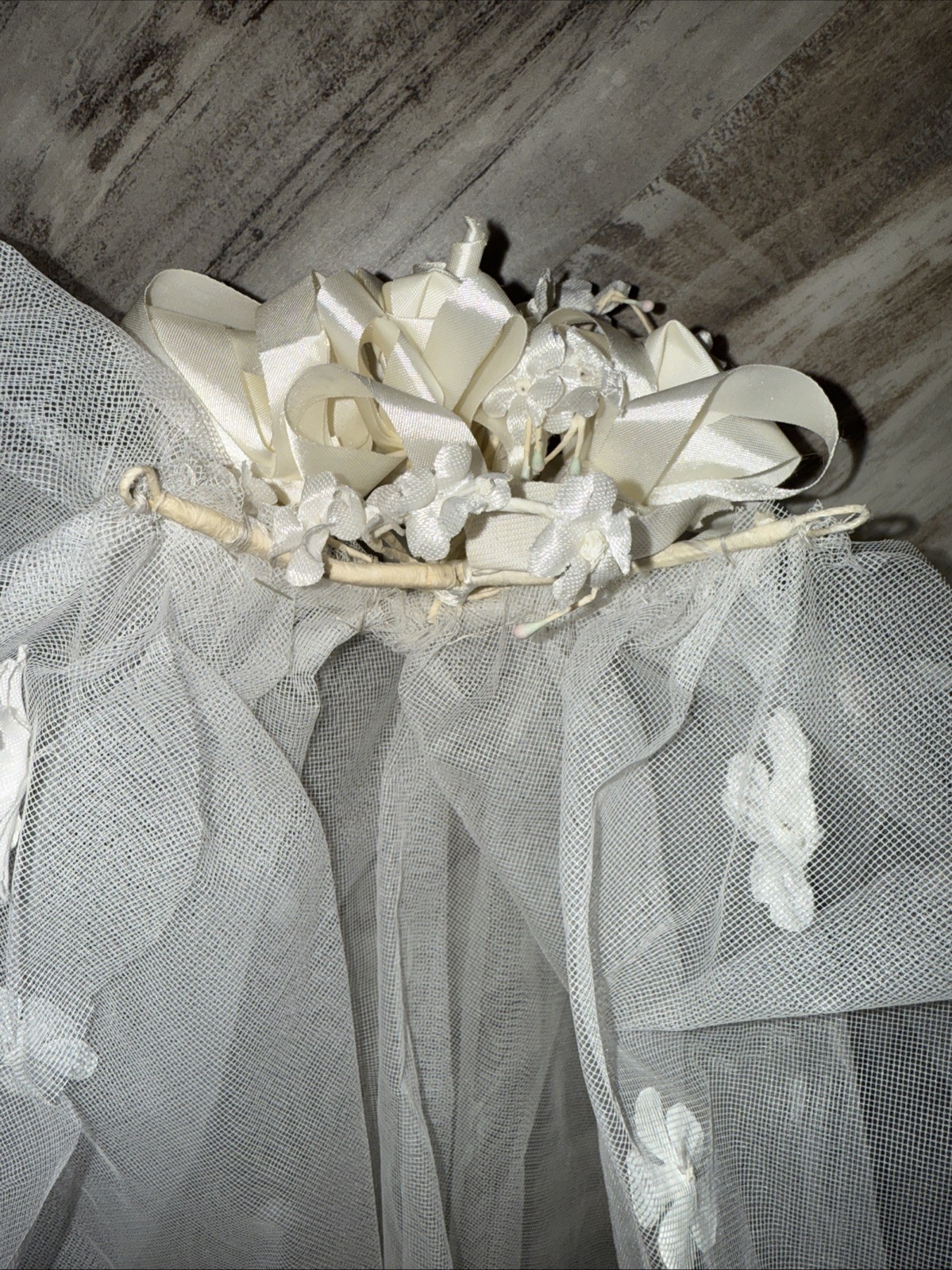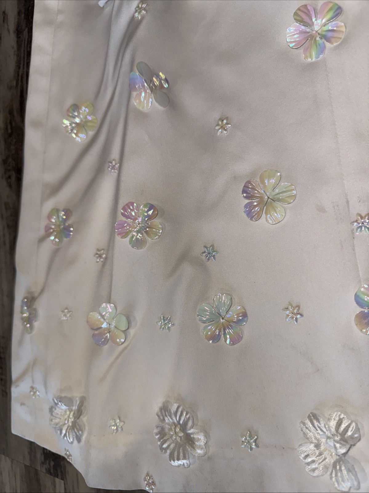 как выглядит VTG 70 s 80 s Bridal Satin Iridescent Flowers Long Sleeve Wedding Dress Veil фото
