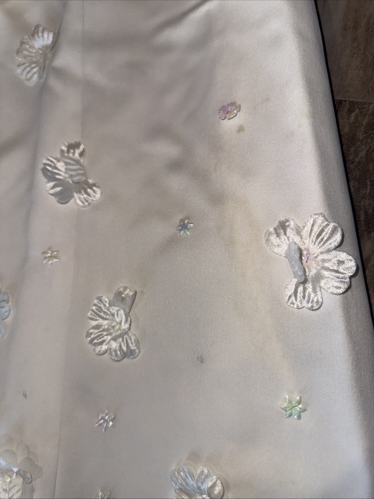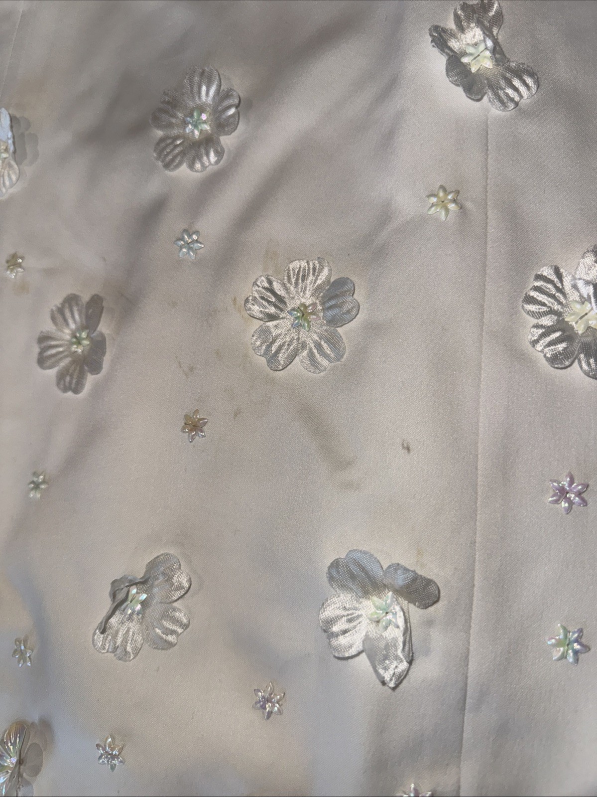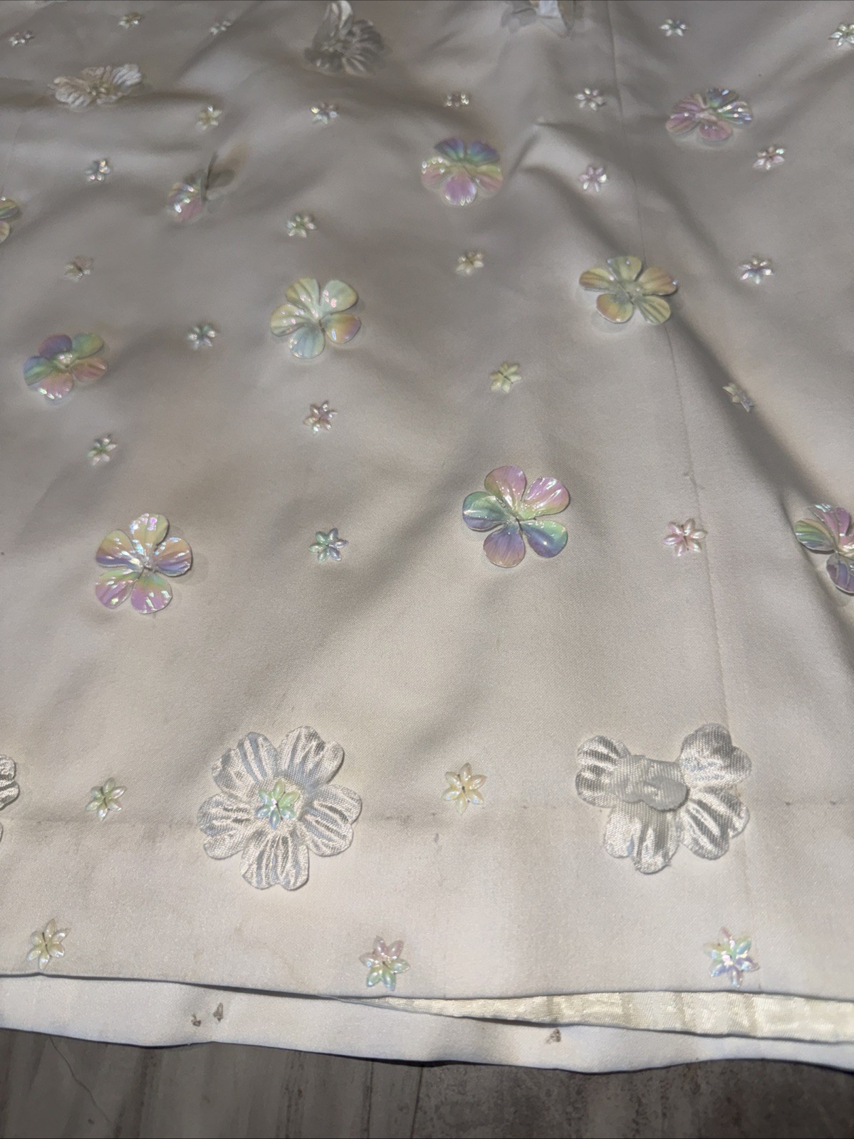 VTG 70 s 80 s Bridal Satin Iridescent Flowers Long Sleeve Wedding Dress Veil
