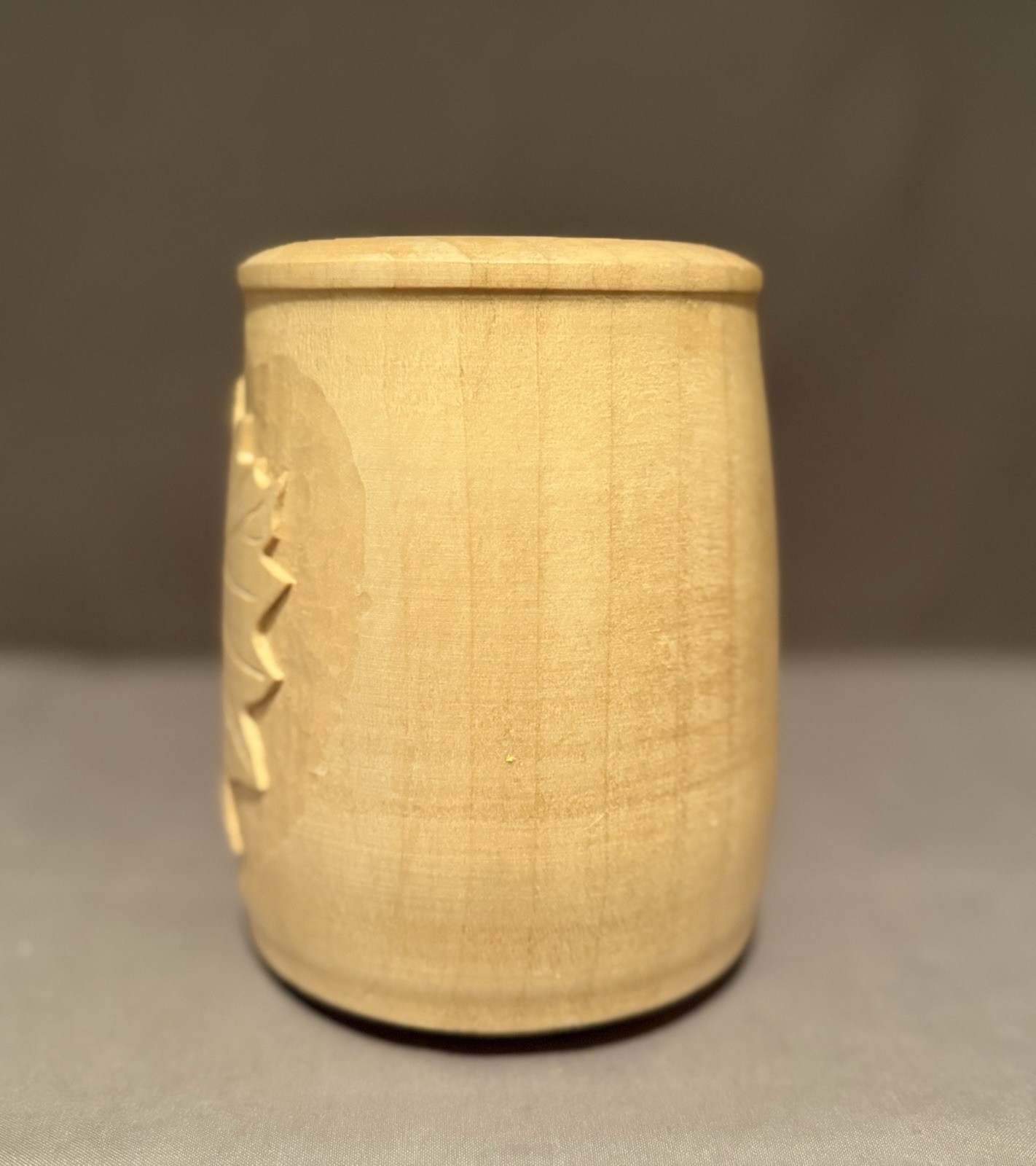 HandCarved Wooden Vase W/ Leaf Design Carved Into Vase Folk Art Signed By Artist