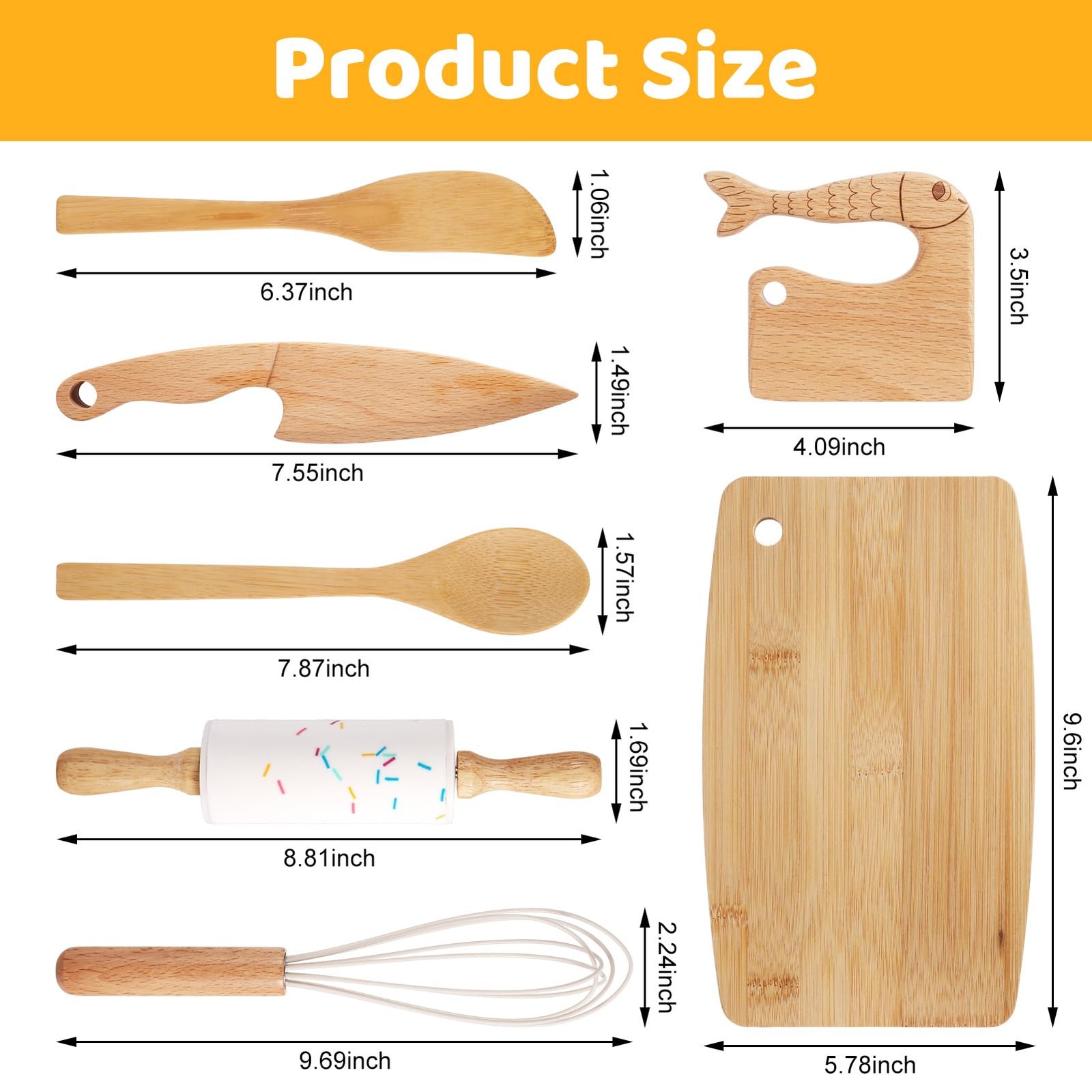 Included Components: Kids Knives, Cutting Board, Egg Whisk, Spoon, Rolling Pin