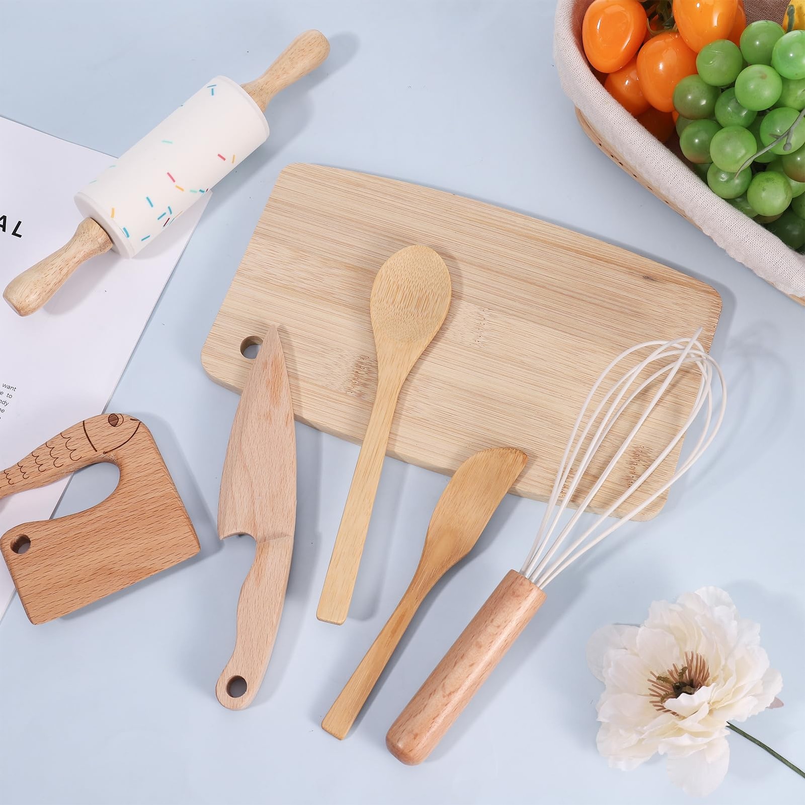 7 Pieces Wooden Kids Knife Toddler Knife Set Toddler Cutting Board And Knife ...