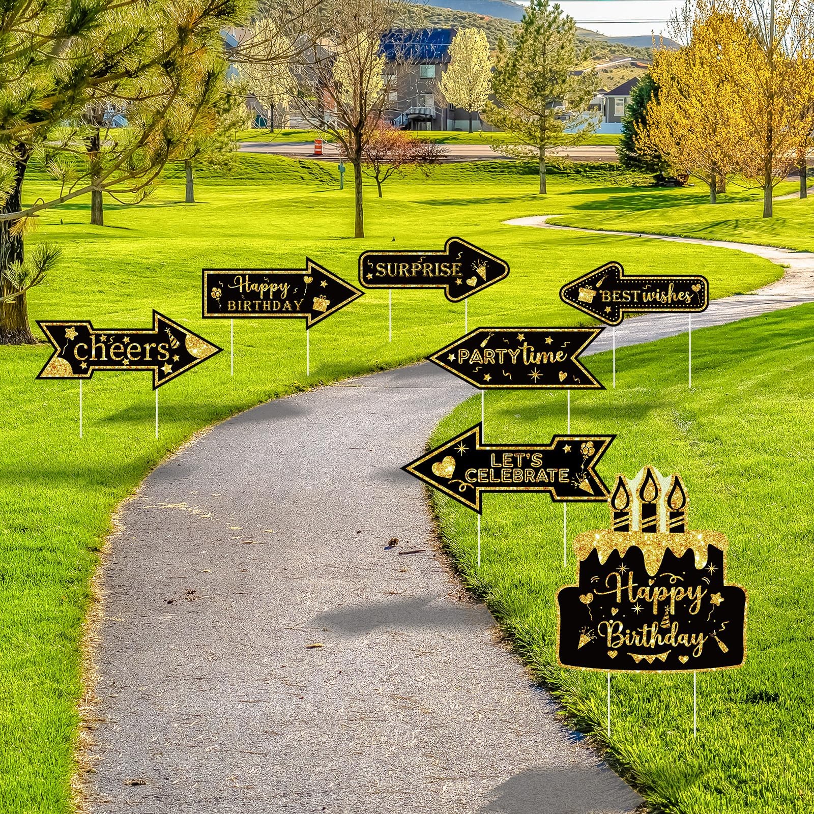 Black Gold Birthday Decorations for Men Happy Birthday Yard Signs with Stakes...
