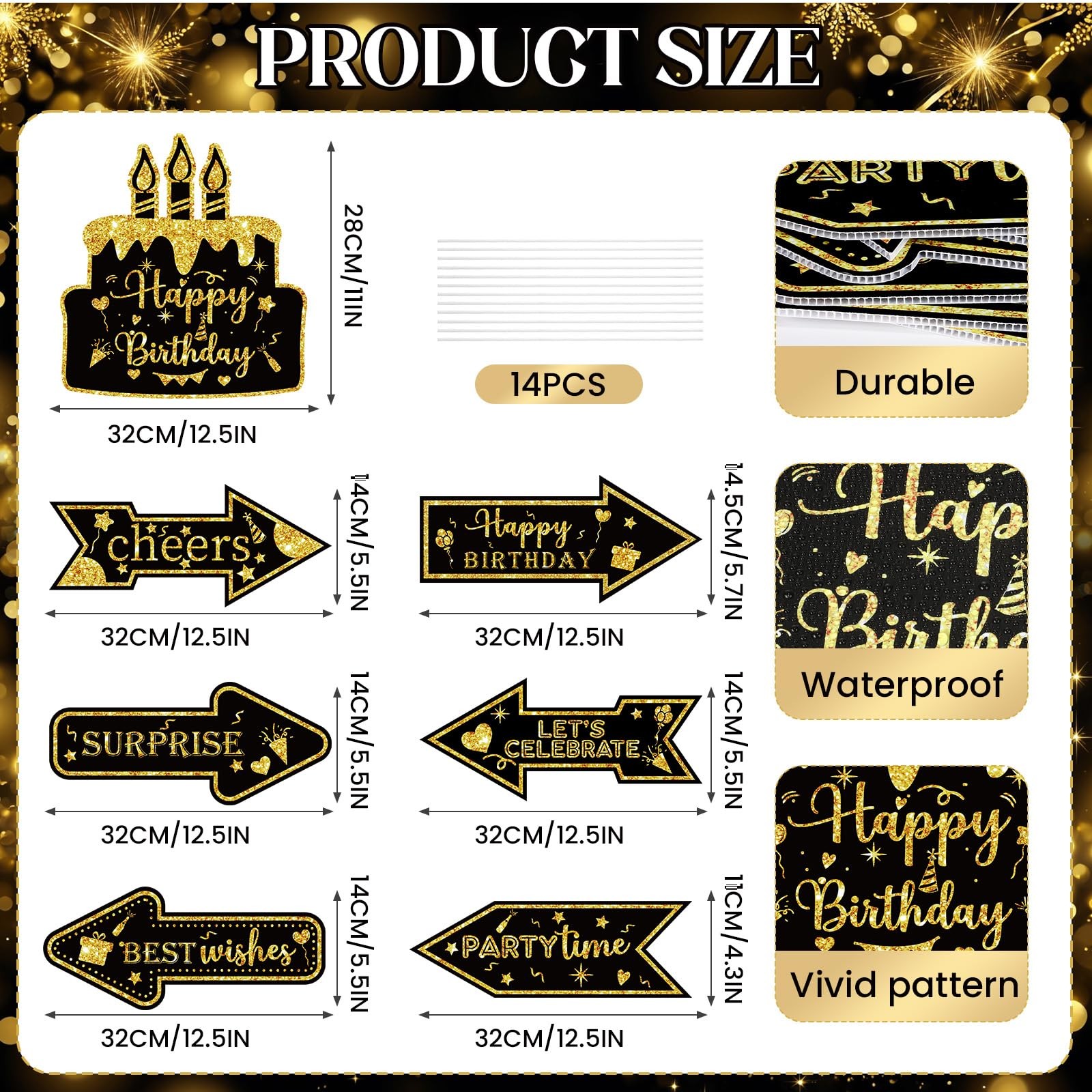 как выглядит Black Gold Birthday Decorations for Men Happy Birthday Yard Signs with Stakes... фото