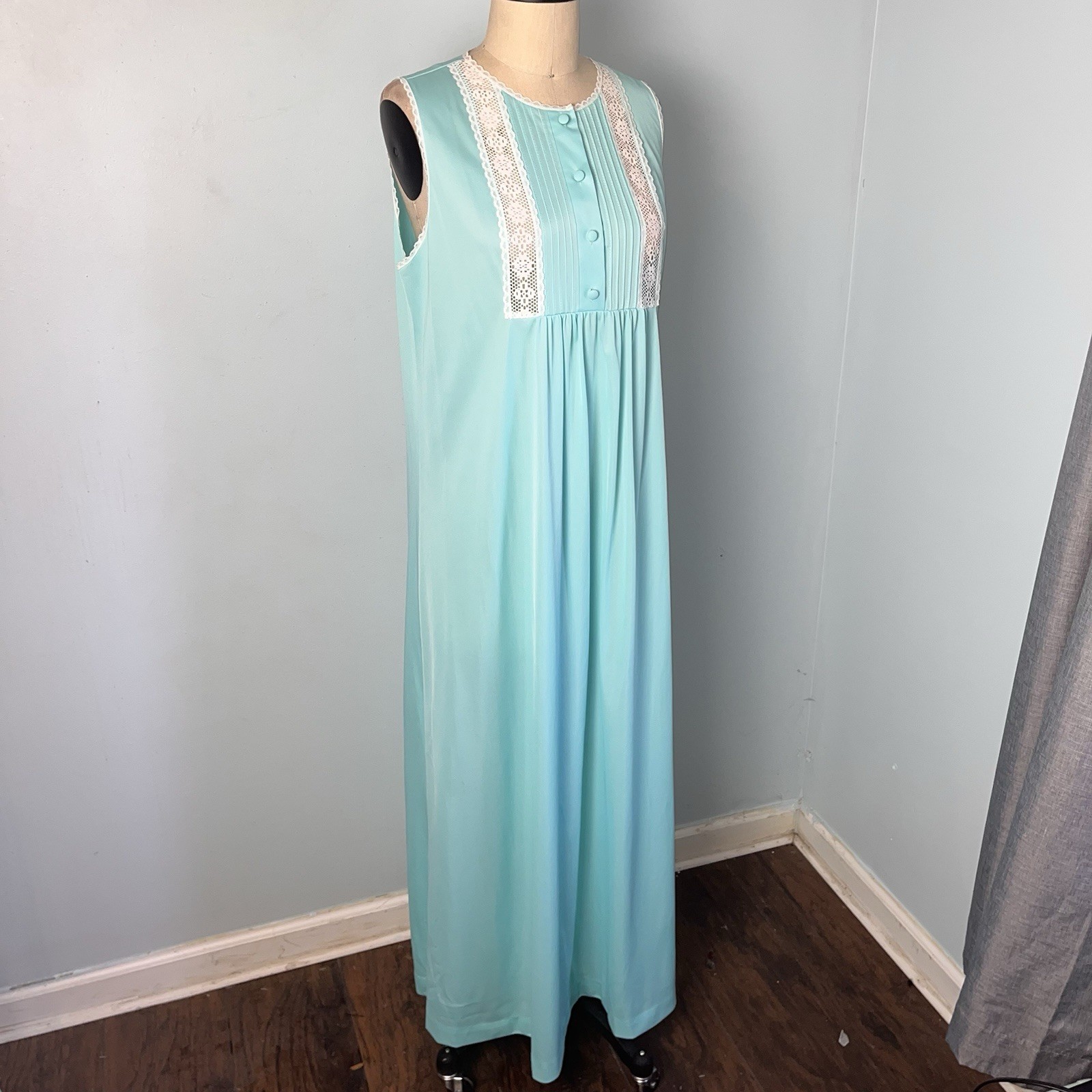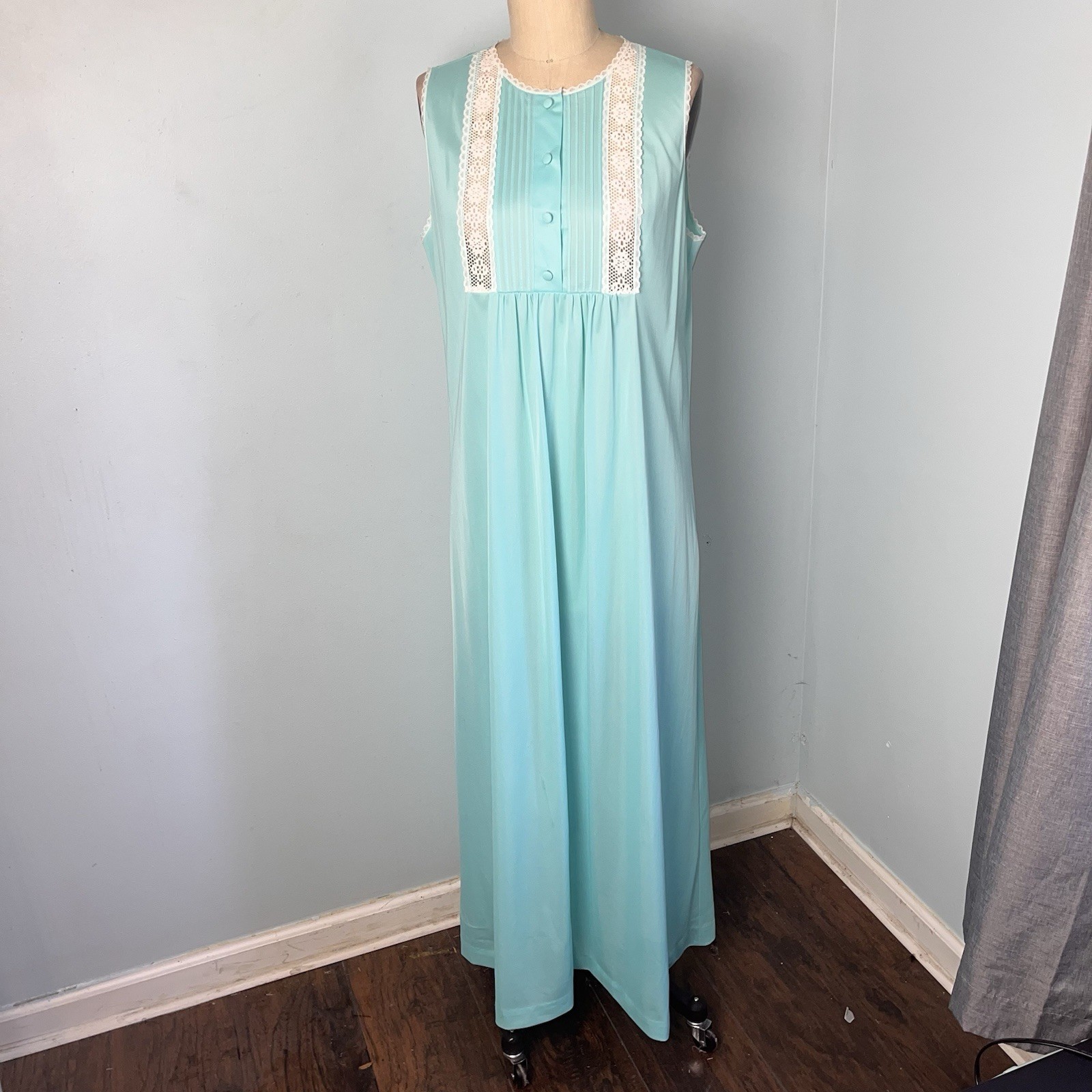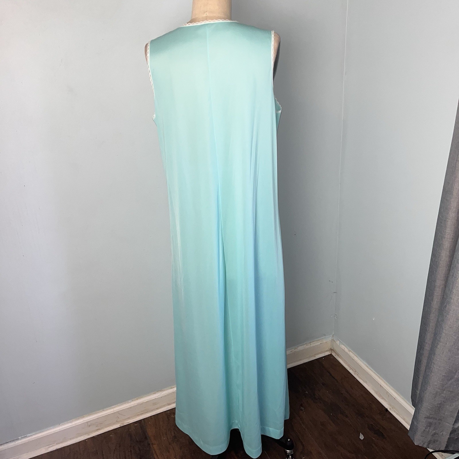 как выглядит Vtg 70s Gossard Artemis Nightgown Robe 2 pc Set Lace Peignoir Blue Long Large фото