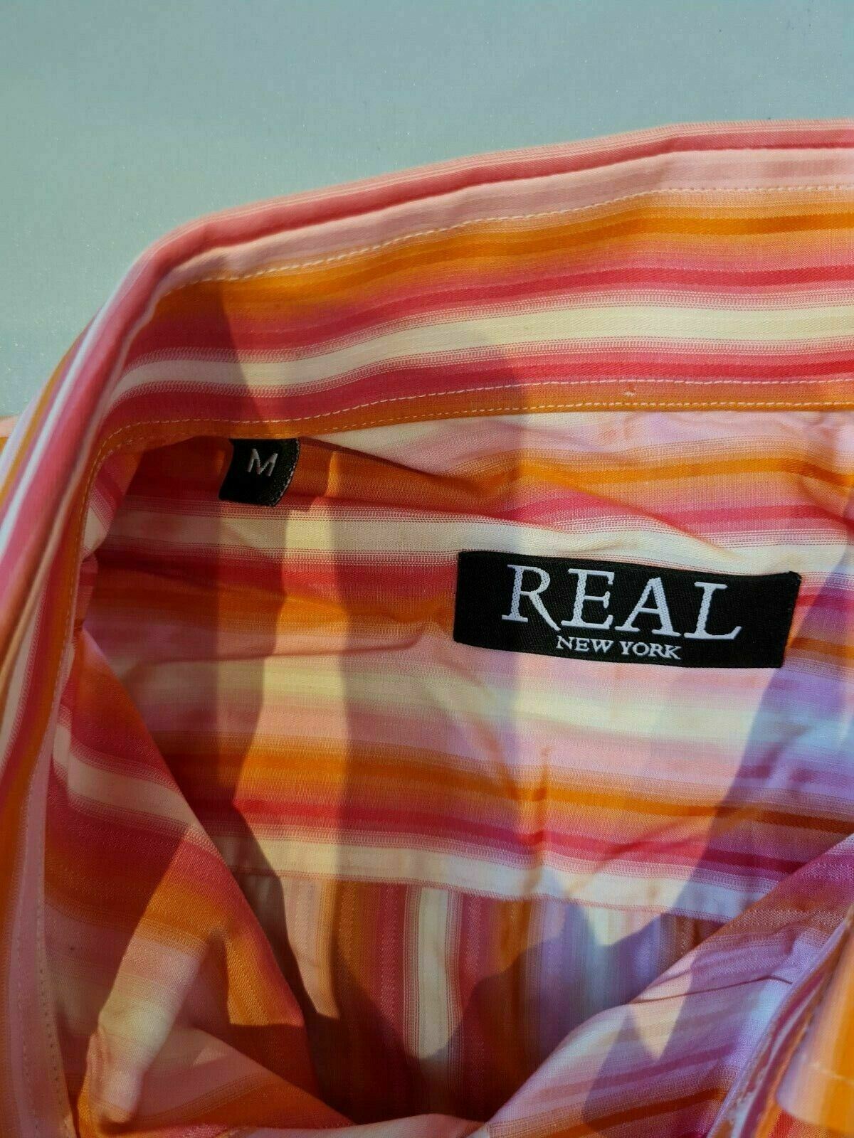 как выглядит REAL New York Orange White Long Sleeve Button Up Shirt Size Medium фото