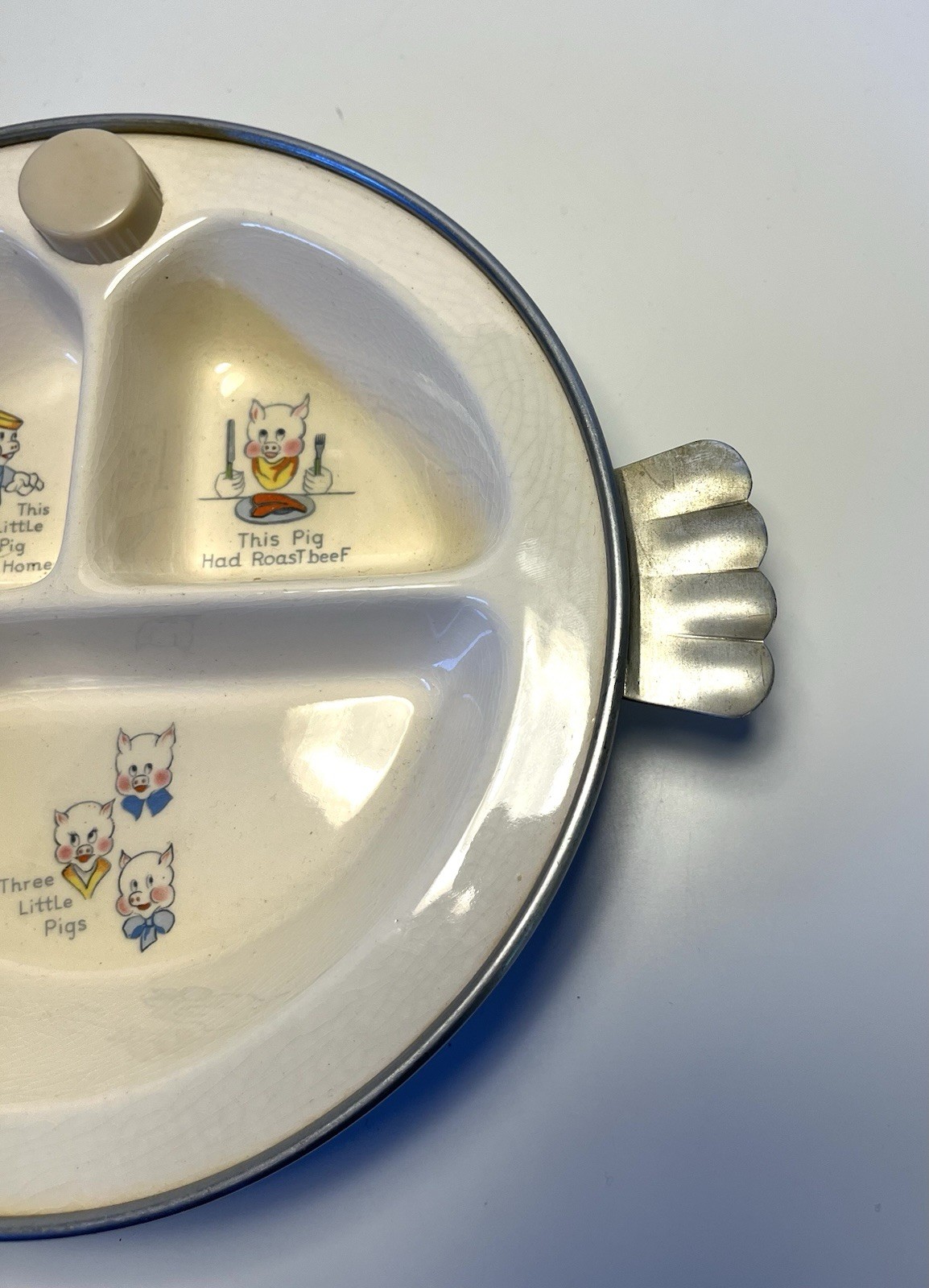 Vintage 1950s Excello baby child ceramic warming dish Three Little Pigs VG-MINT