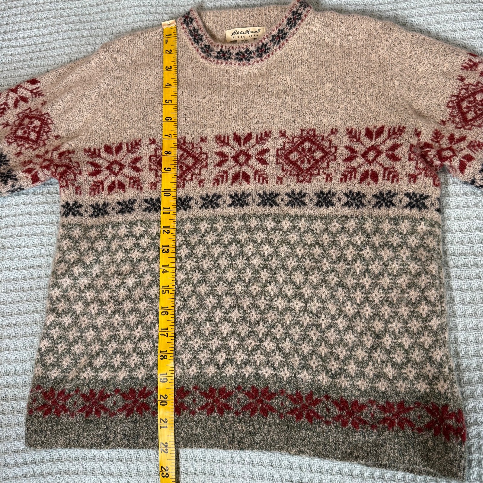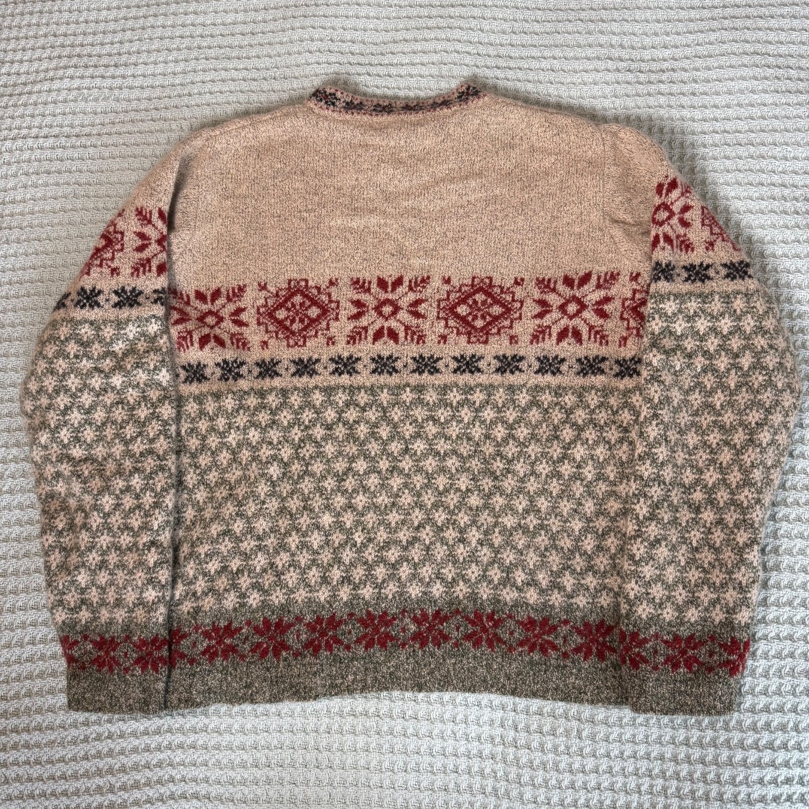 Vintage Eddie Bauer Fair Isle Wool Blend Tan Sweater Womens Small Nordic 90s Y2K