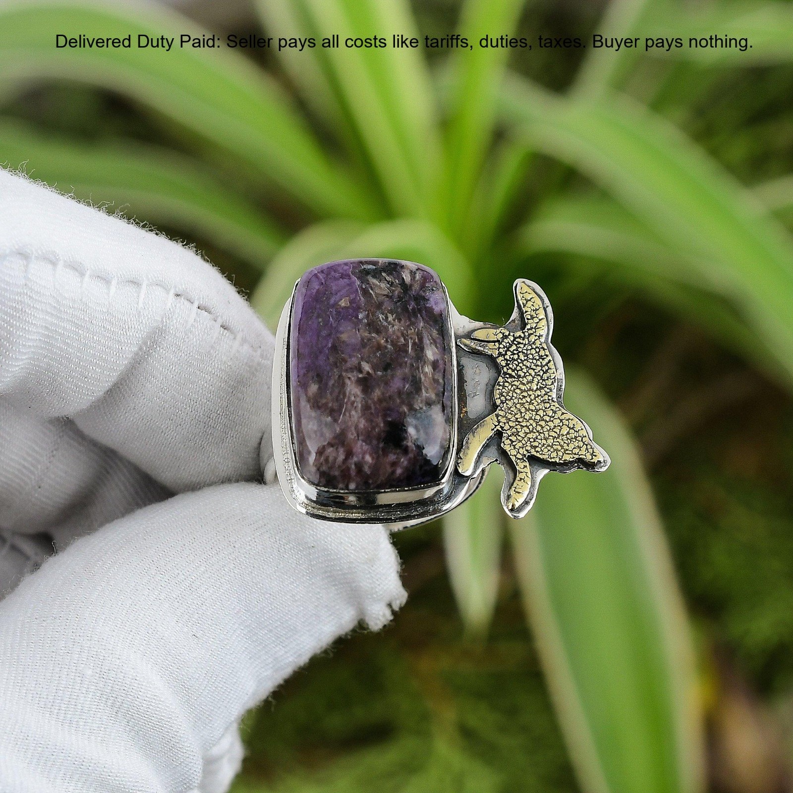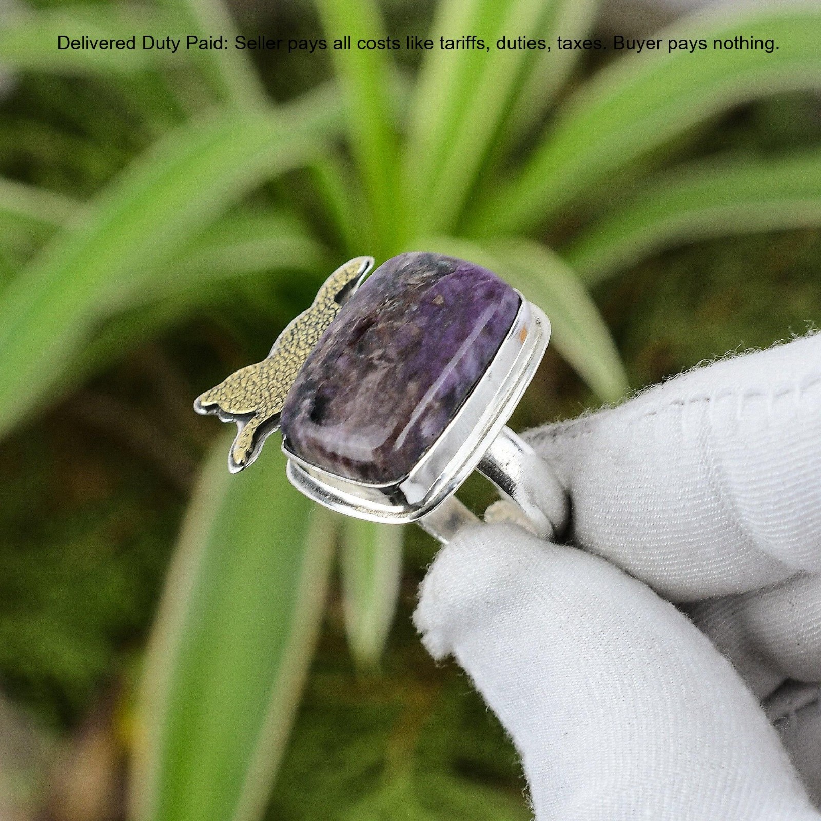 Valentines Sale Natural Russian Charoite Birthday Promise Ring Sterling Silver