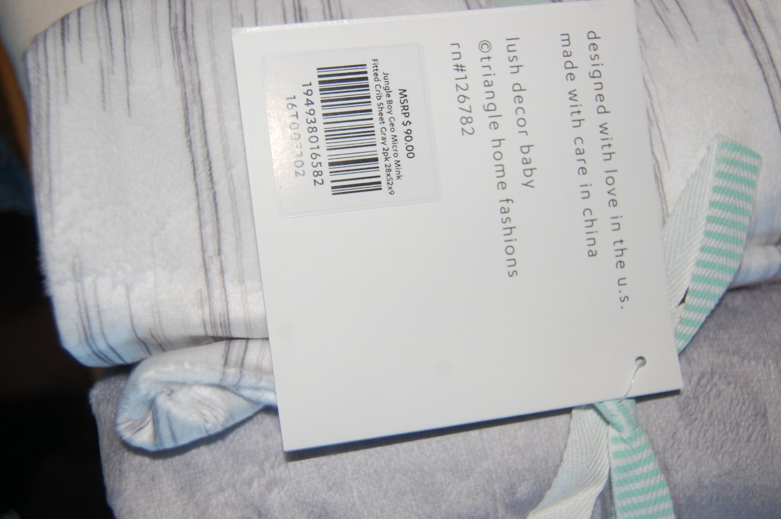 как выглядит Lush Decor Baby Fitted Crib Sheet 2 Pk Jungle Boy Gray Micro Mink 28x52x9 NEW фото