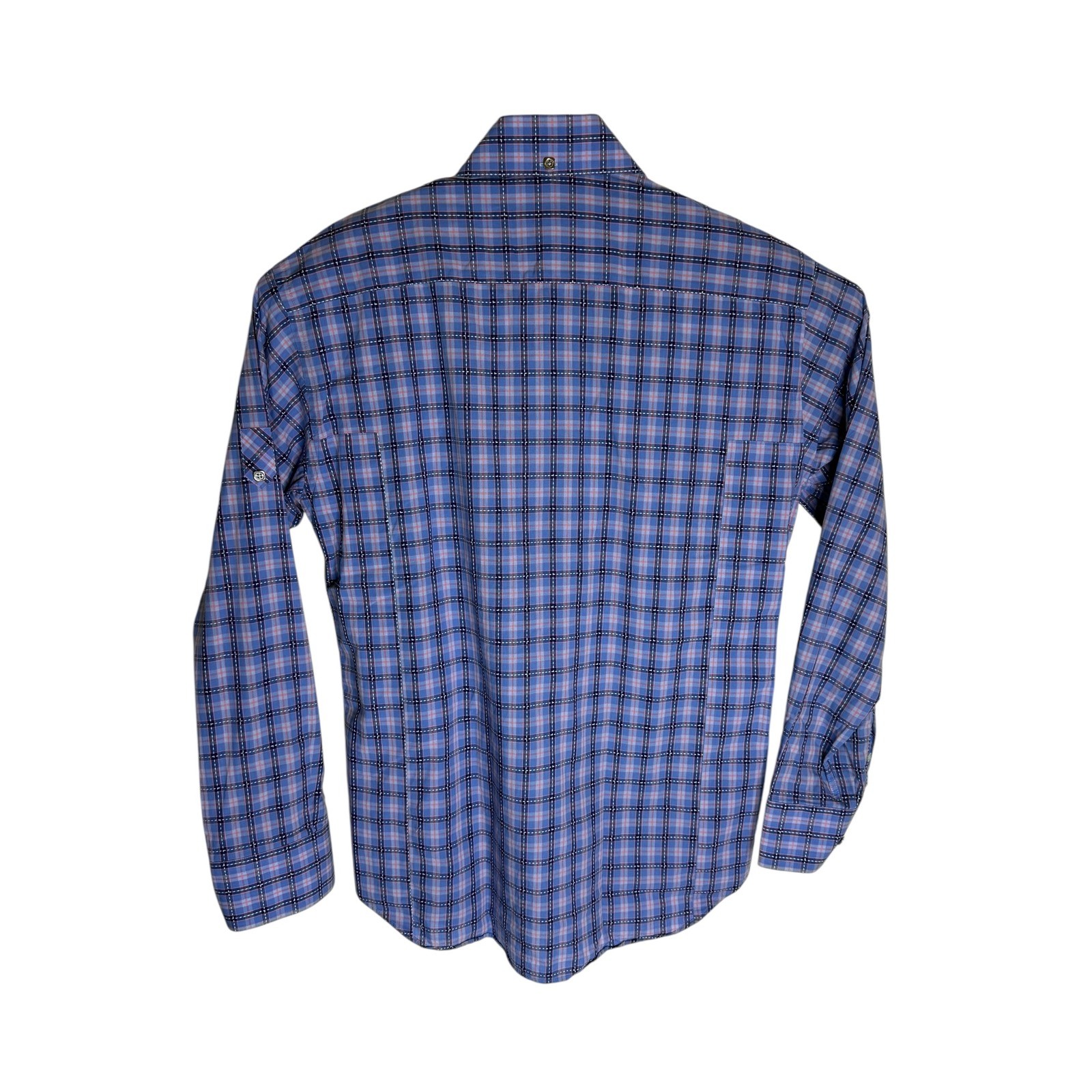 как выглядит BOGOSSE Mens Size 5 XL Blue Plaid Long Sleeve Button Up Shirt 100 Cotton фото