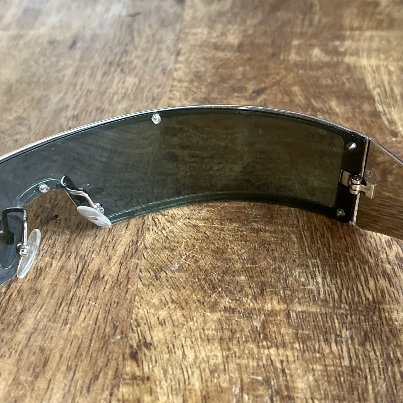 как выглядит Dior Punk Sunglasses  Silver Wraparound Shield Blue GreenLens Y2K Rare Galliano фото