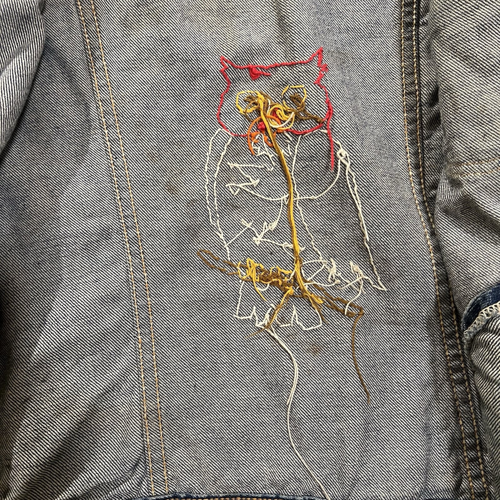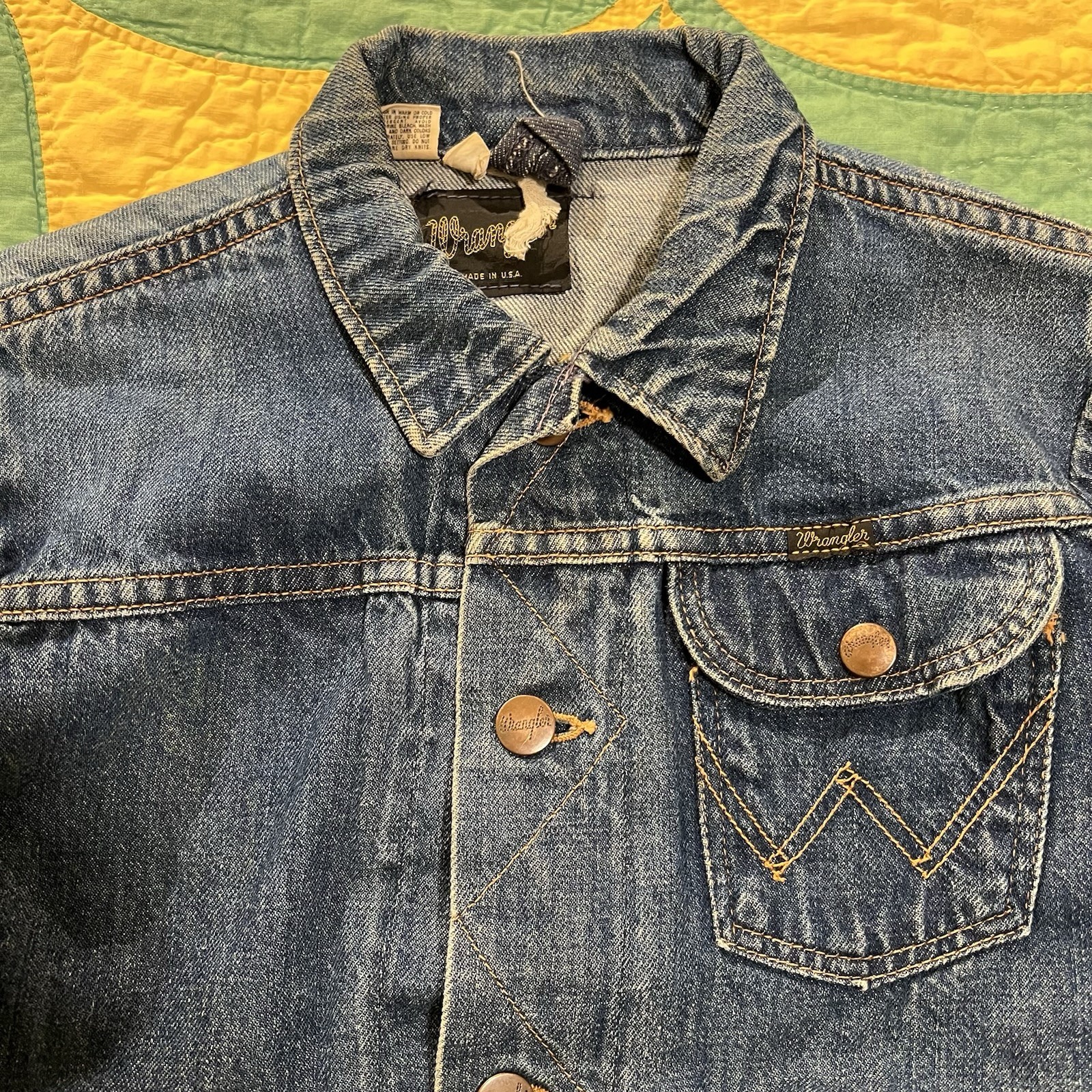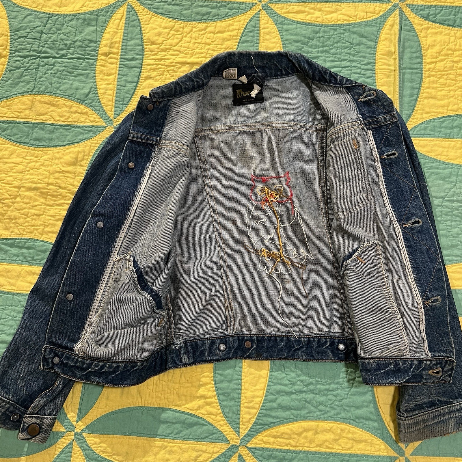 Vtg Wrangler Embroidery 70s Denim Trucker Jacket 3-Pocket Selvedge Size 16 As-Is