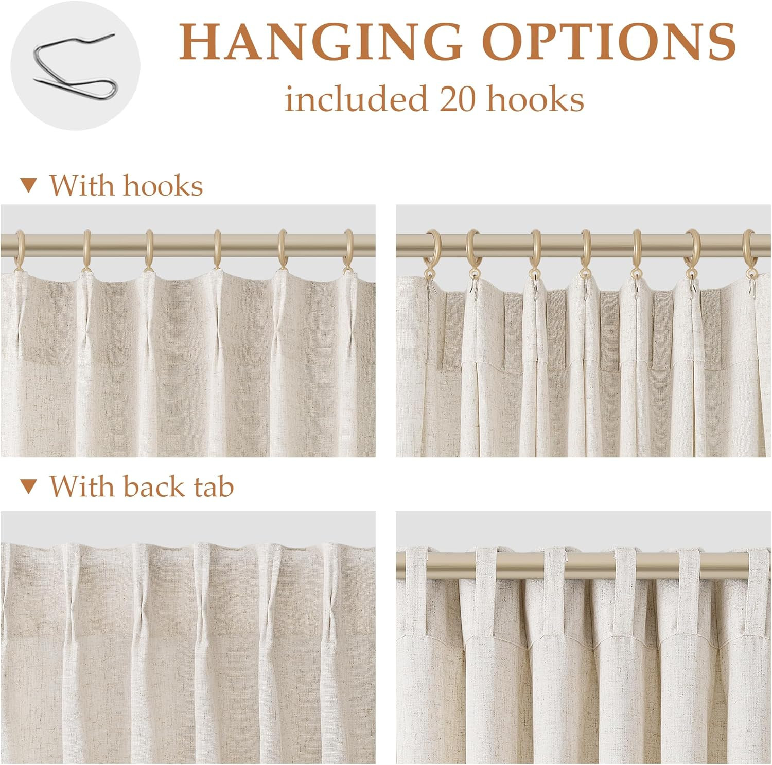 Natural Pinch Pleated Linen Curtains 84 Inch Length 2 Panels for Living Room Bed