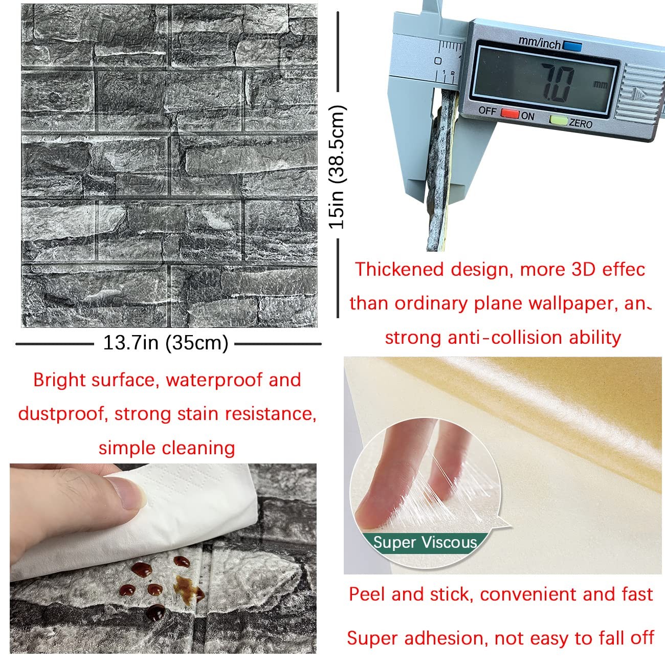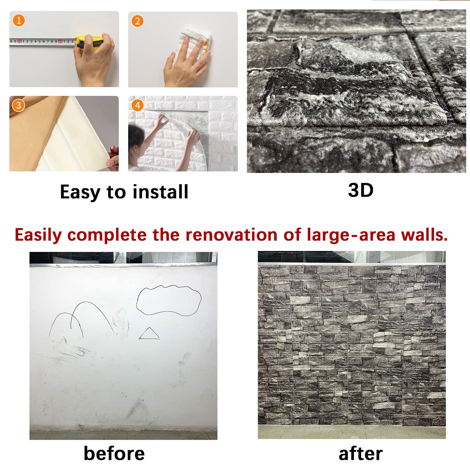 10PCS 3D Wall Panels Peel and Stick Foam 3D Brick Wallpaper Peel and Stick Bl...