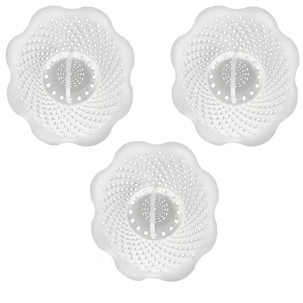 Hair Catcher Bathroom Tub Strainer in White 3-Pack