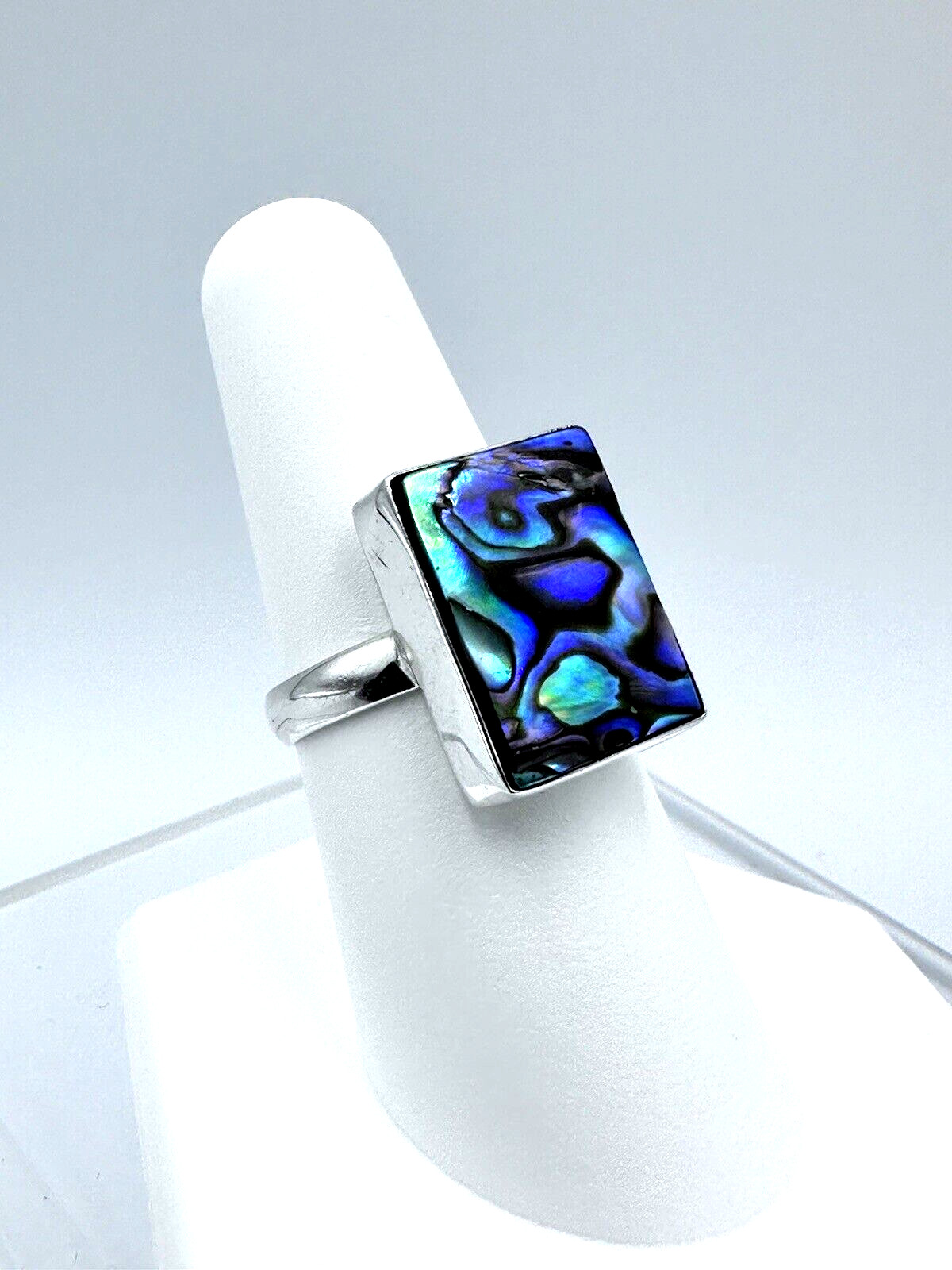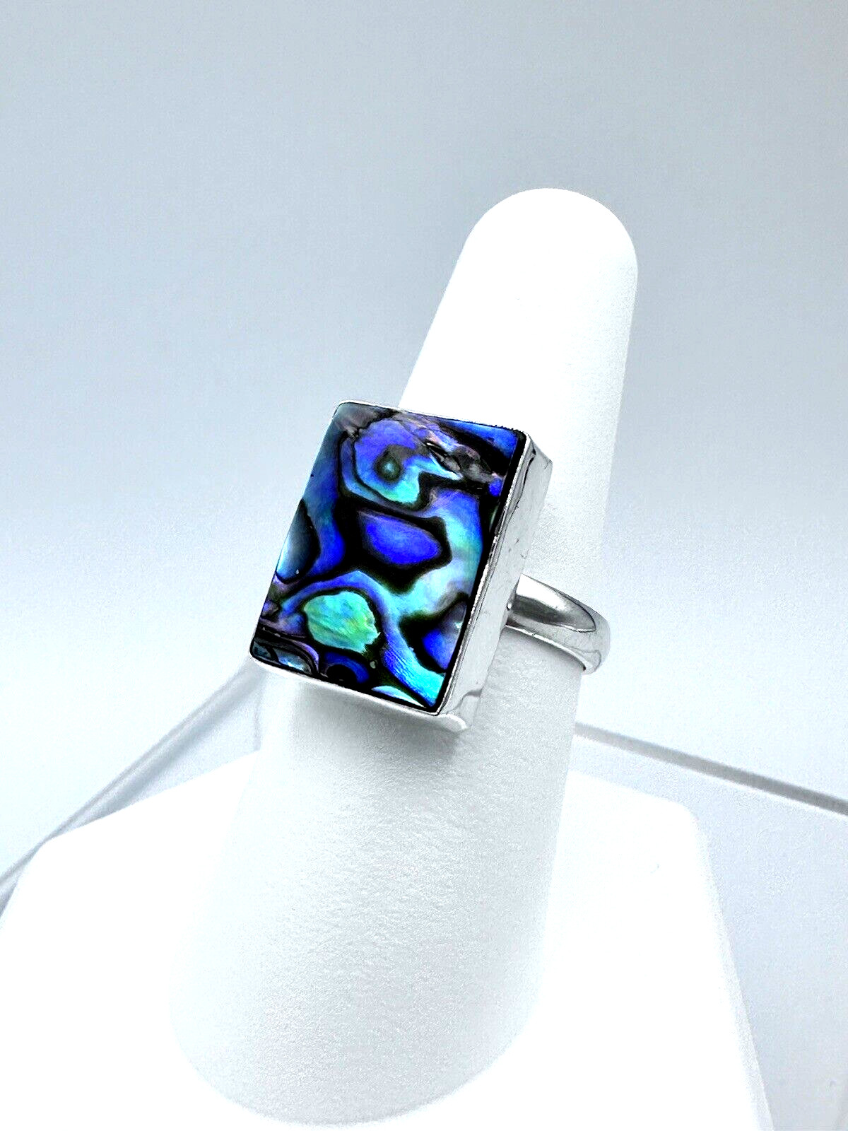 Sterling Silver Abalone Ring Size 8 --12.5 x 16.5 mm