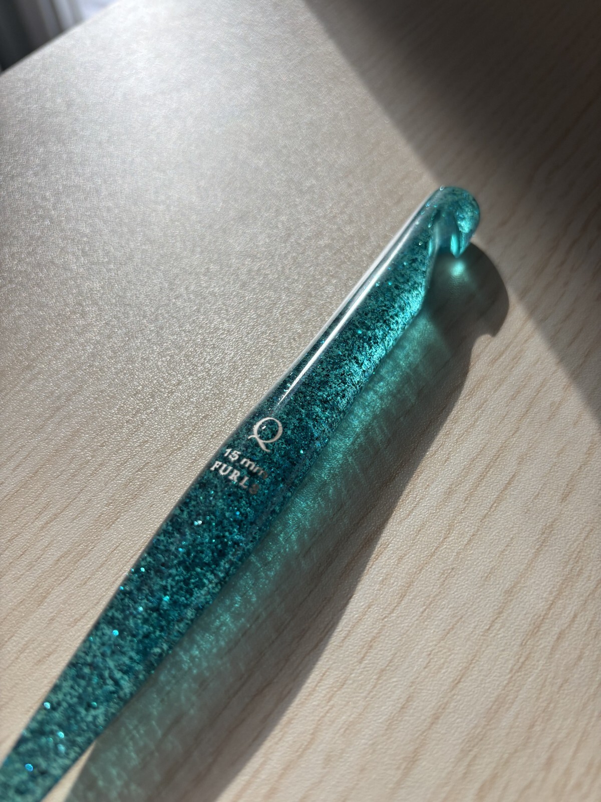 как выглядит Limited Edition Resin crochet hook FURLS Teal Turquoise Glitter size Q фото