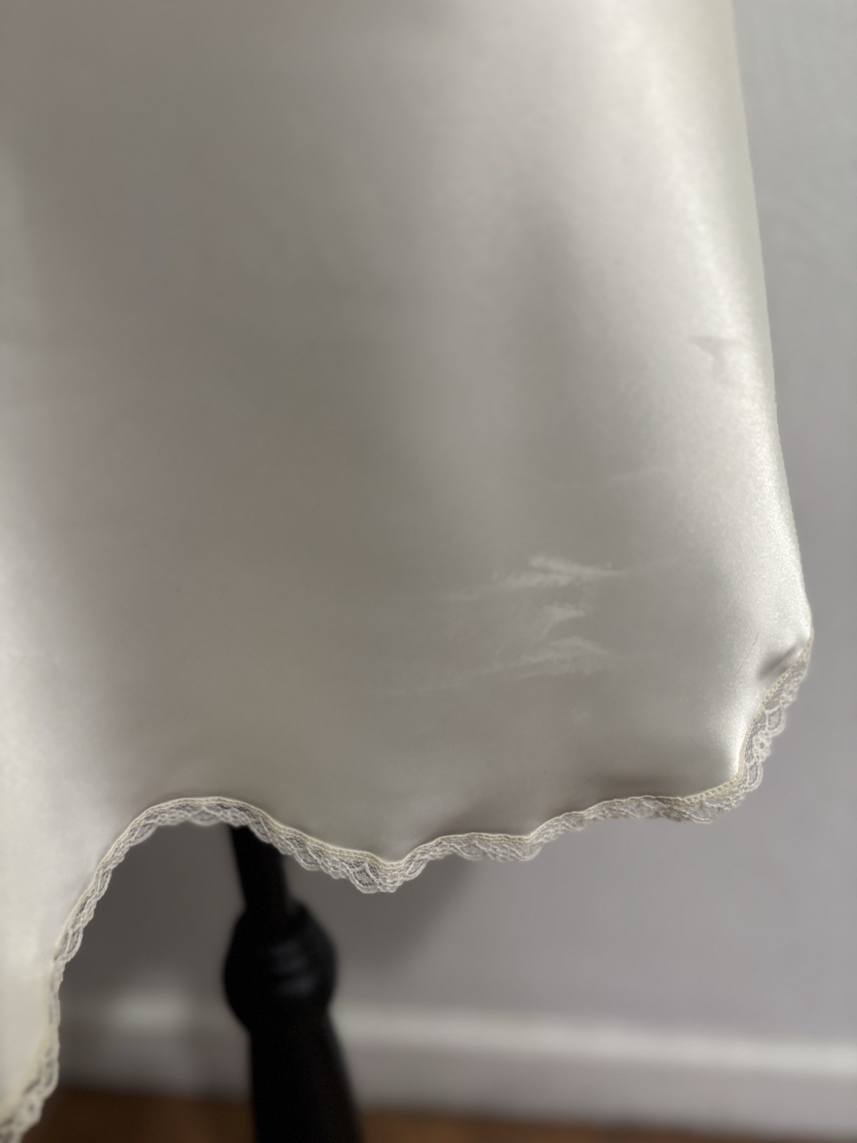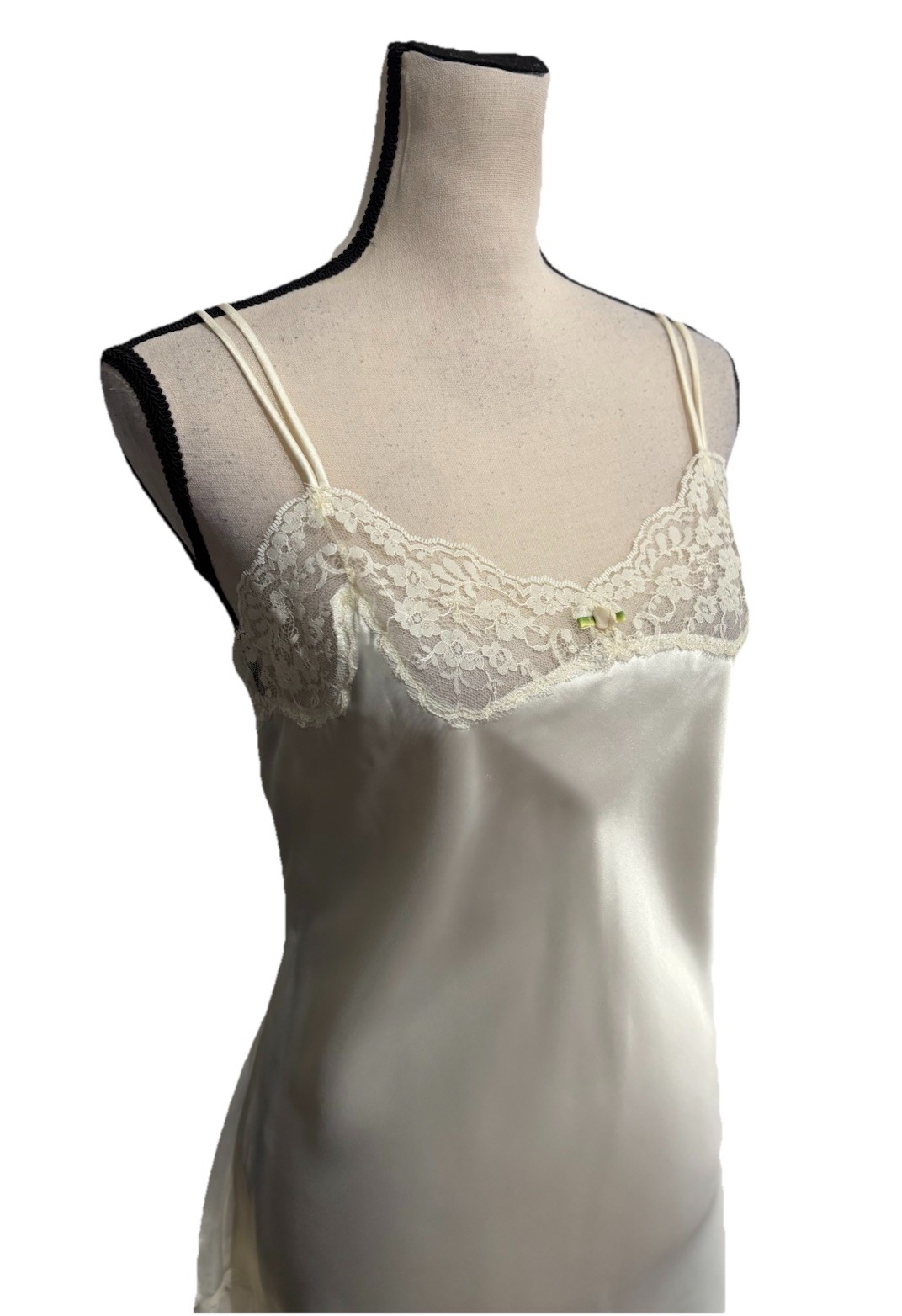 Victorias Secret Vintage Gold Crown Label Ivory Lace Trim Satin Slip Chemise LG