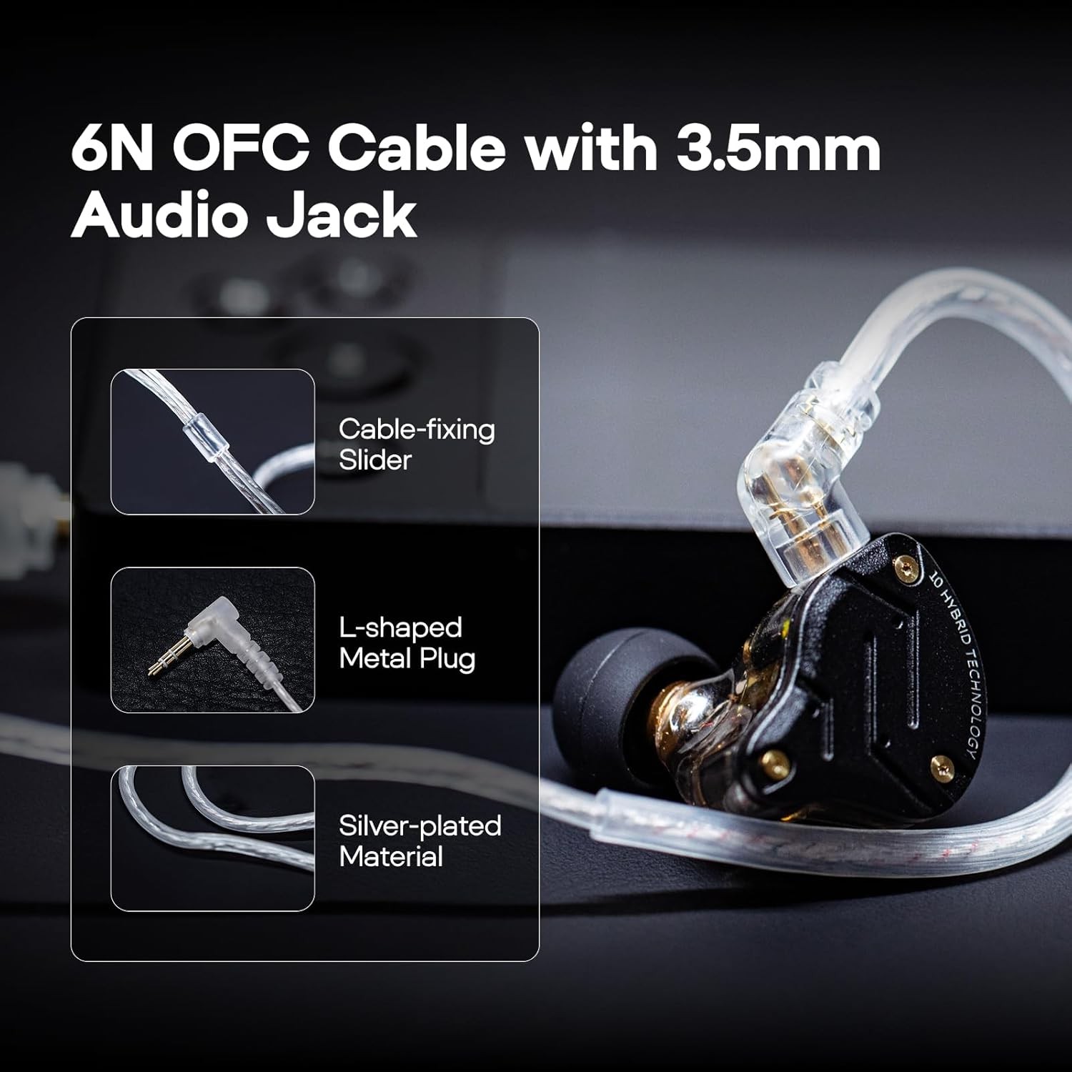 как выглядит Linsoul KZ ZS10 Pro, 4BA 1DD 5 Driver in Ear Monitor, HiFi Wired Dark Black фото