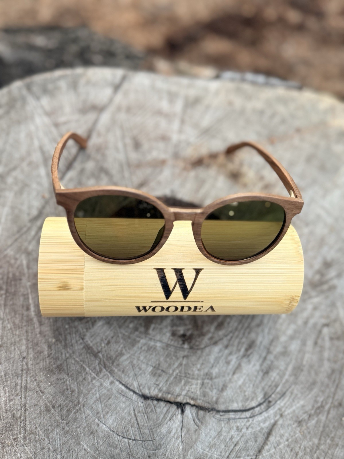 WOODEA Wooden bamboo frame Sunglasses Polarized Unisex Case Cloth
