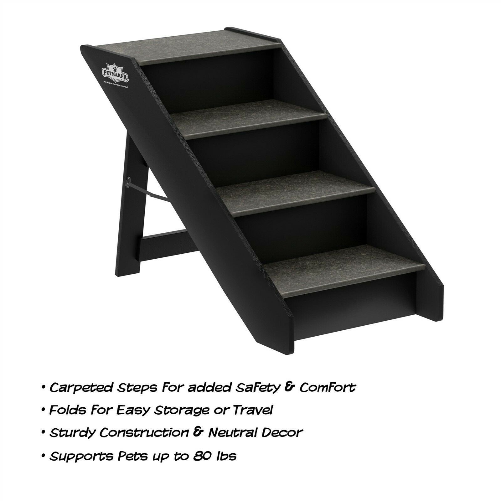 15 Inch Wide Foldable Wooden Pet Stairs 4 No Slide Steps 20 In High Up to 80 Lb