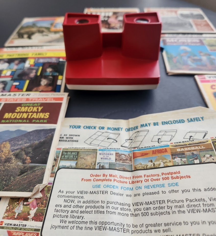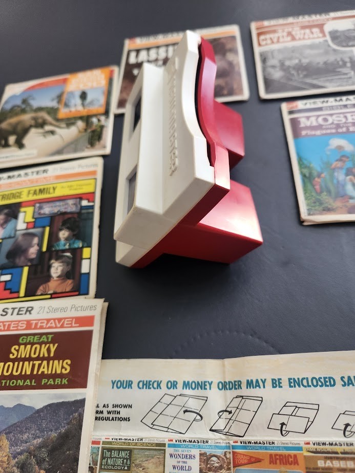 • VINTAGE GAF View Master Viewer Red White w/ Blue Handle Bicentennial w/ Reels