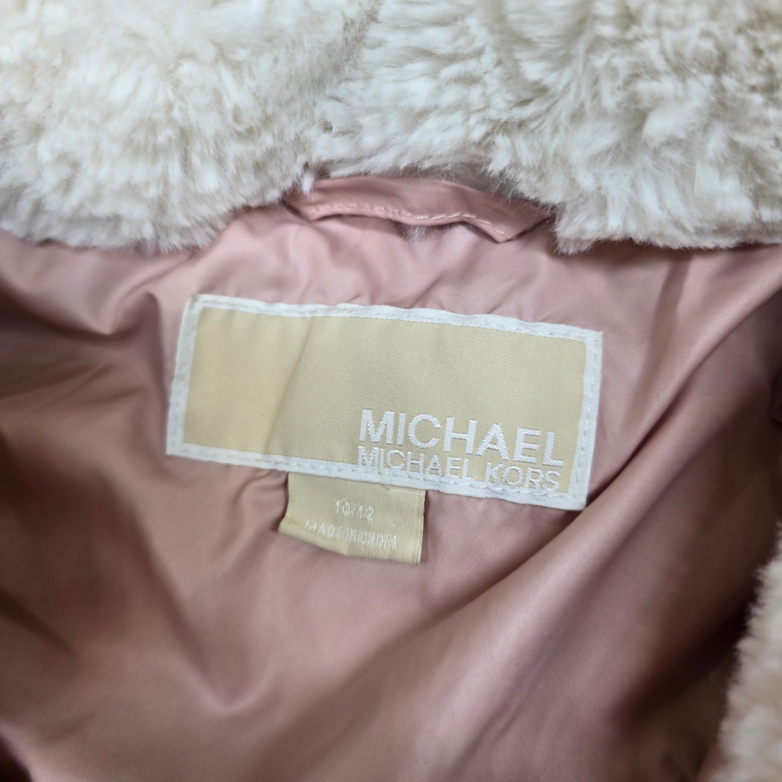 Michael Kors Puffer Jacket Kids Girls 10 12 Pink Hooded Faux Fur Lined