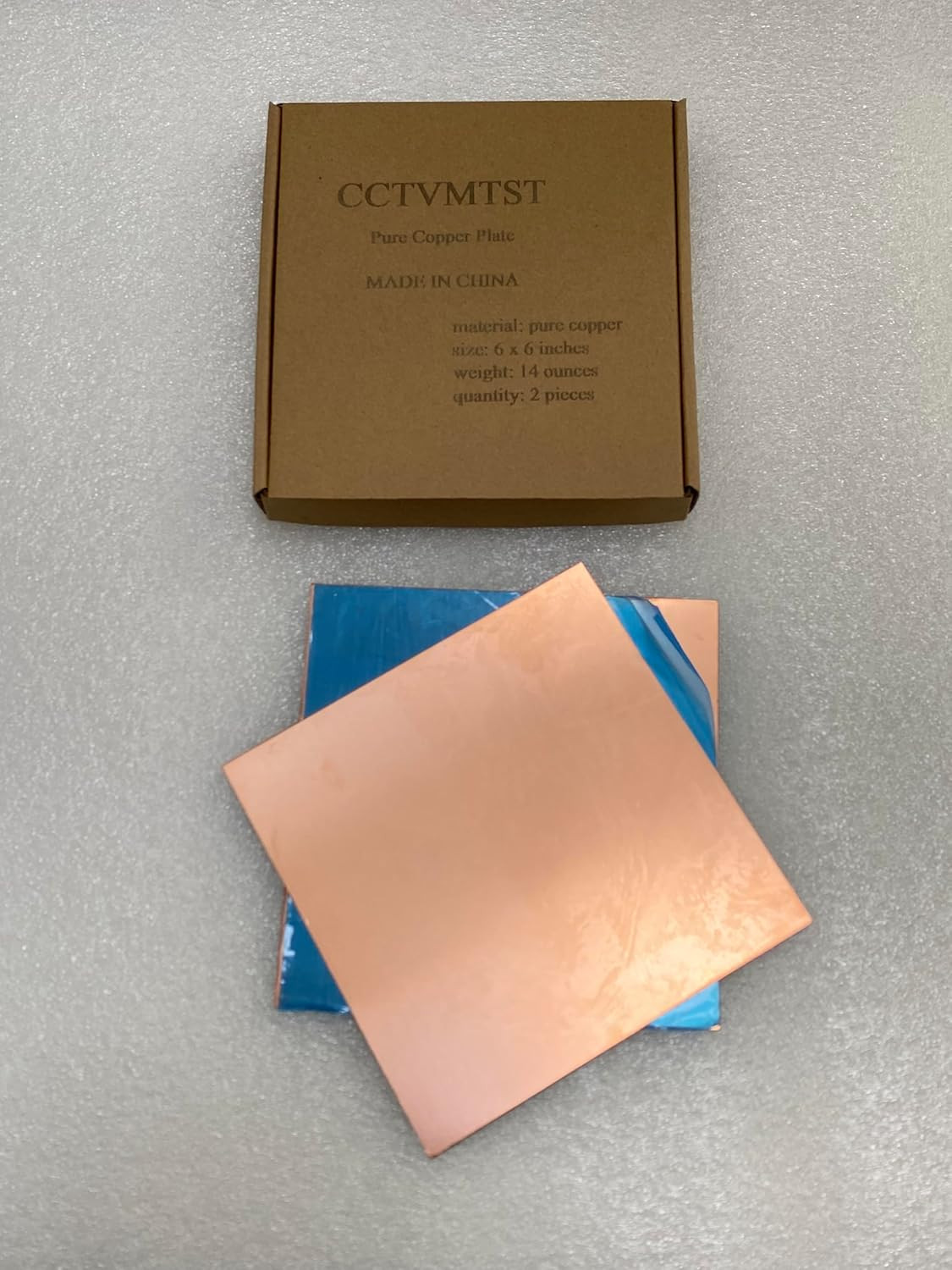 2 Pieces Pure Copper Sheet Plate Panels 6X6 Inches, 18 Gauge, Metal for Industry