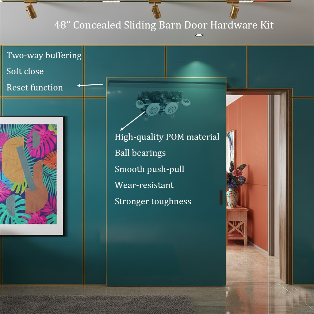 48 Concealed Sliding Barn Door Hardware Kit,Heavy Duty Hidden Barn Door Kit