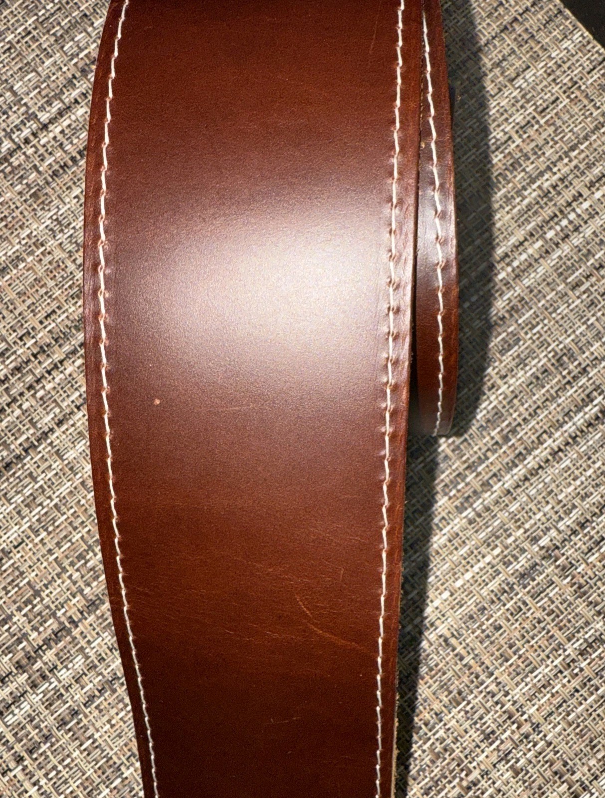 как выглядит Perris Oil Leather Guitar Strap With Contrast Stitching Brown 2.5 in. NWT фото