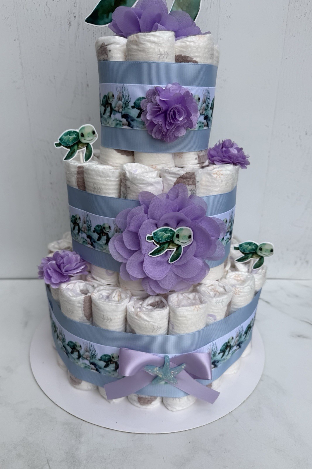 3 Tier Sea Turtle Diaper Cake Baby Shower Kirkland Diaper Size 1