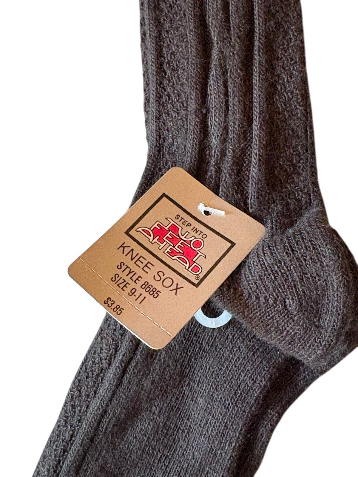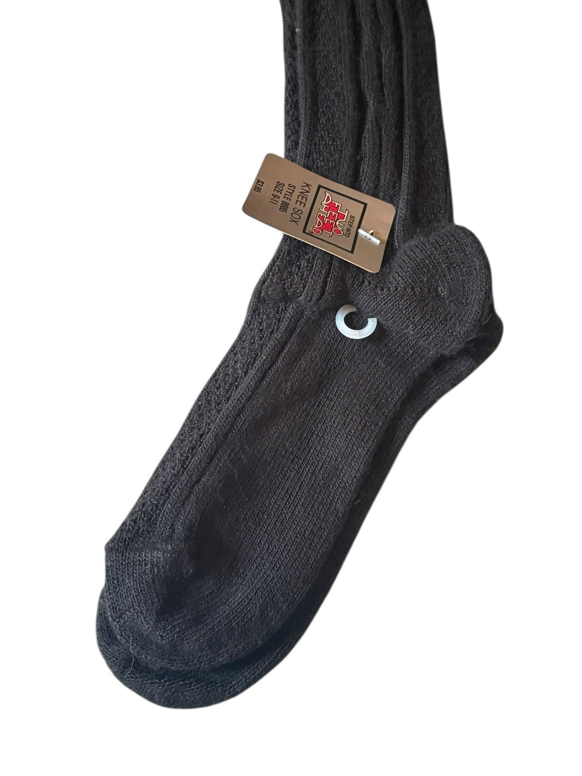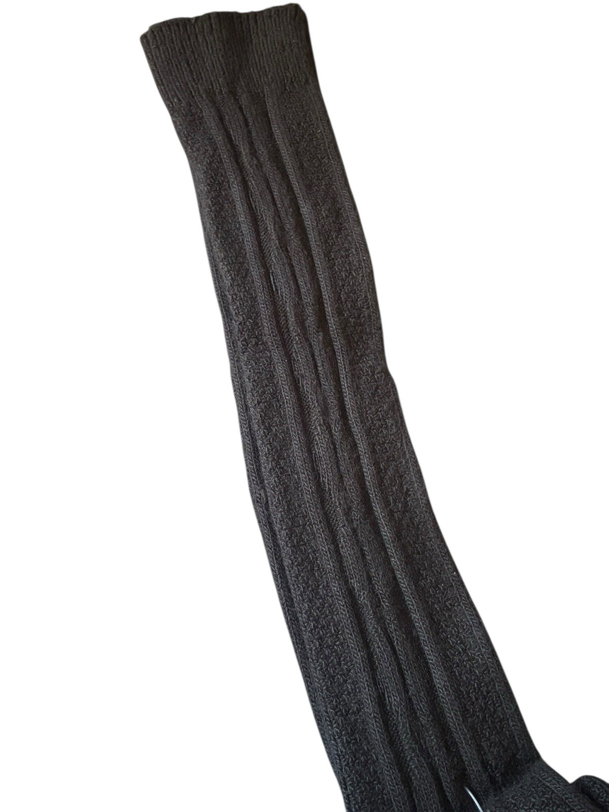 VTG Womens Mens Cable Knit Knee High Socks Orlon Acrylic Nylon BLACK
