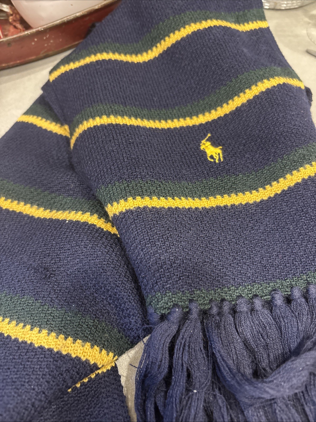 Polo Ralph Lauren Scarf 100 Merino Wool Stripe Fringe Knit