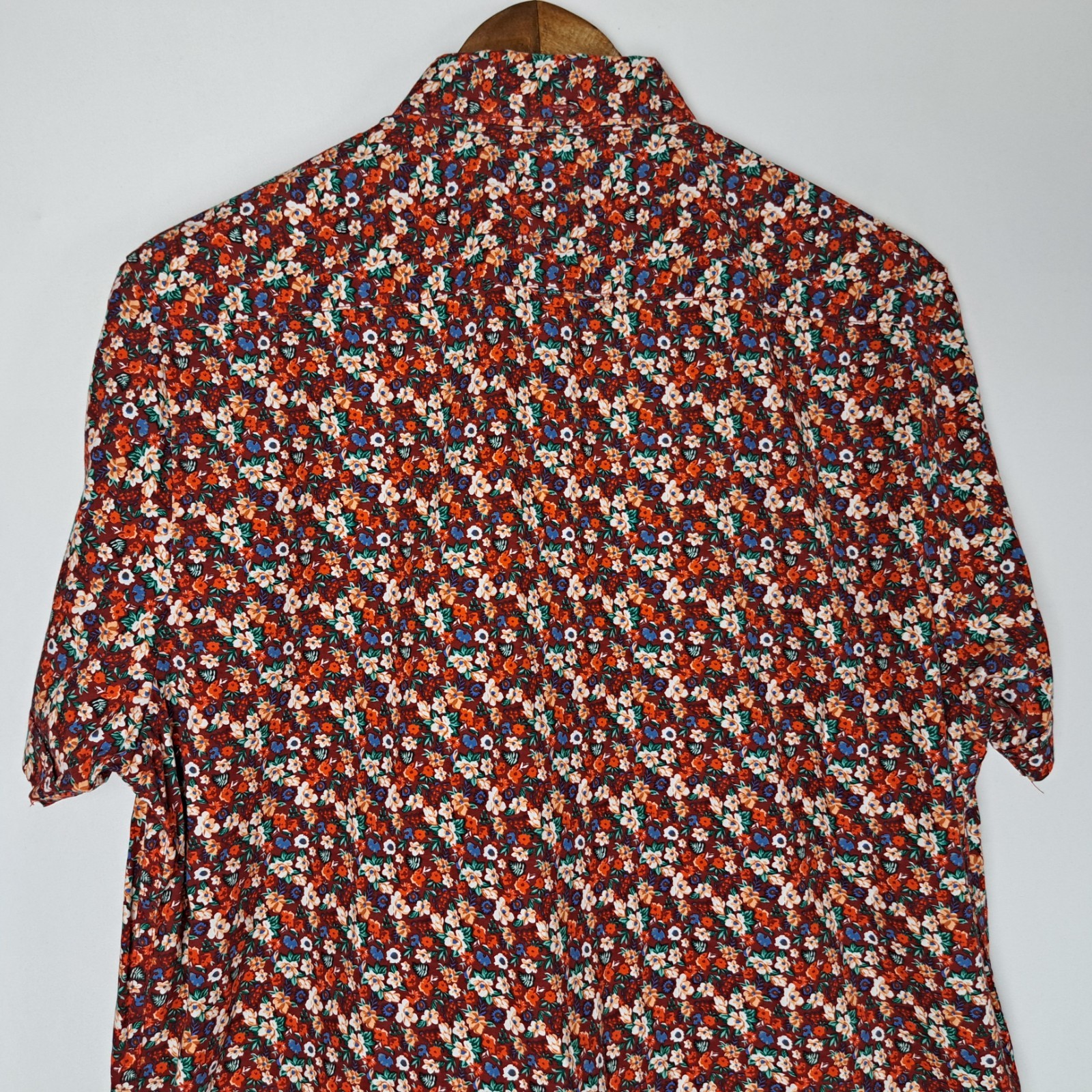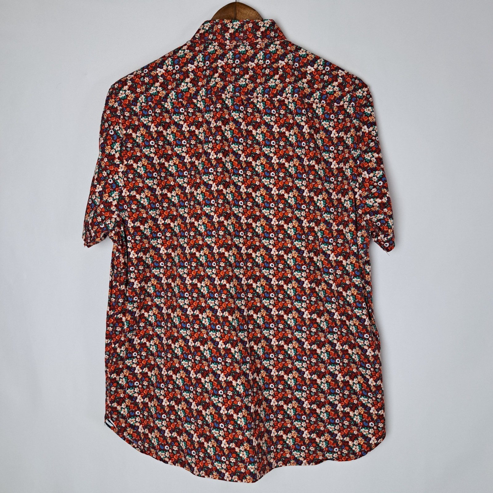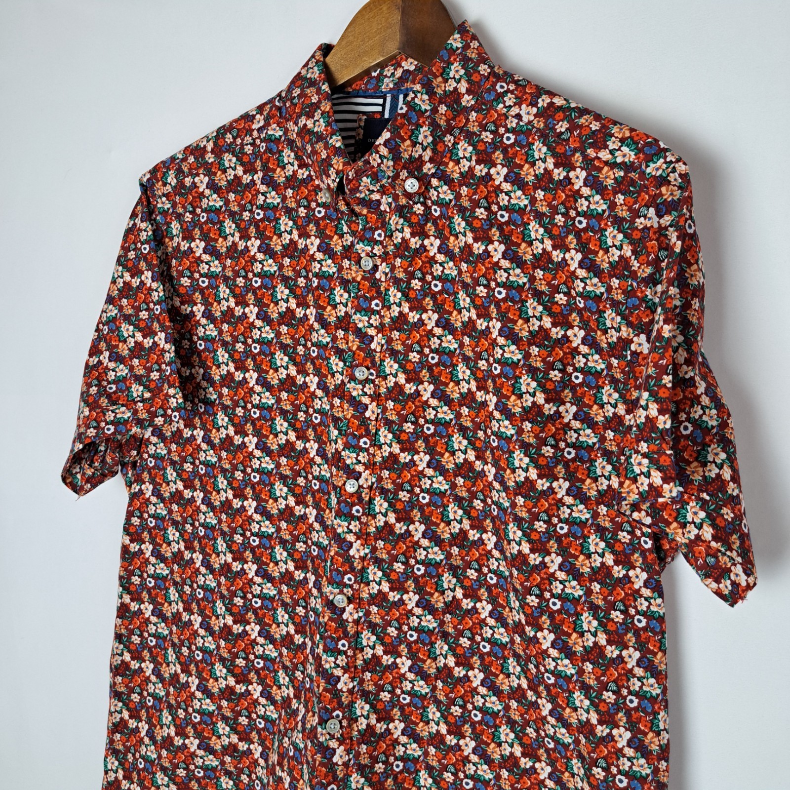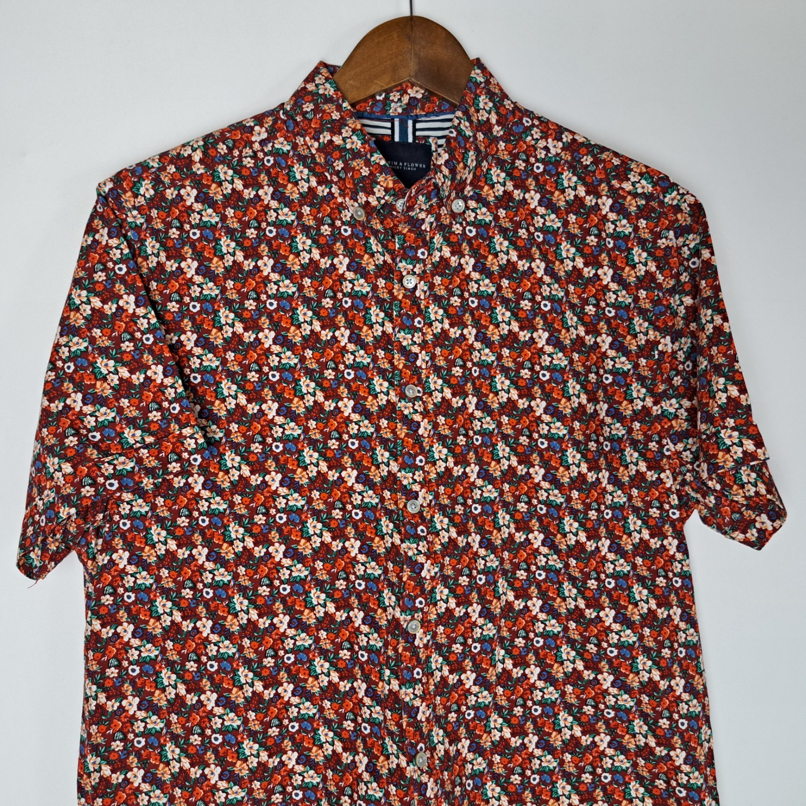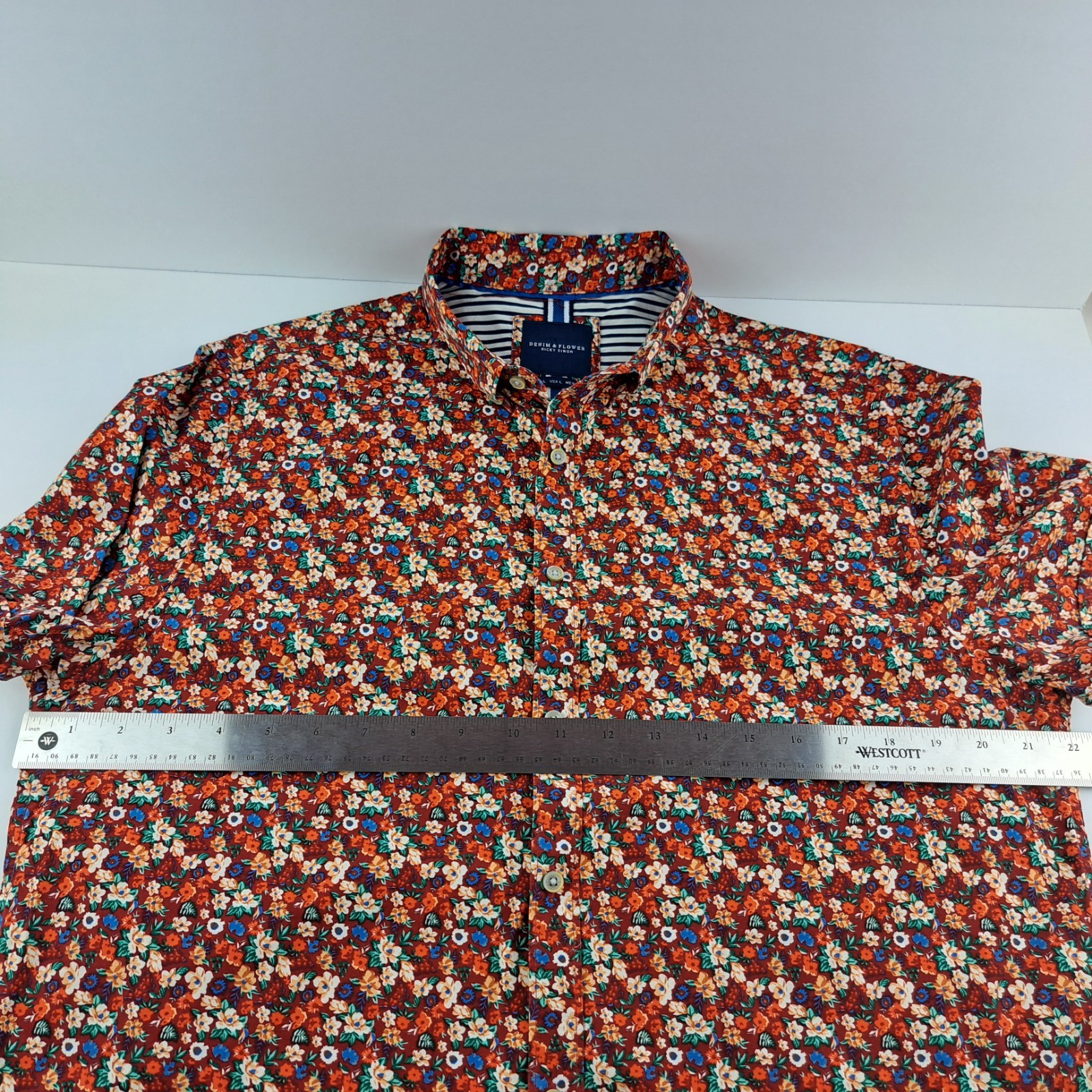как выглядит Denim Flower Ricky Singh Shirt Mens Large Button Down Short Sleeve Floral фото