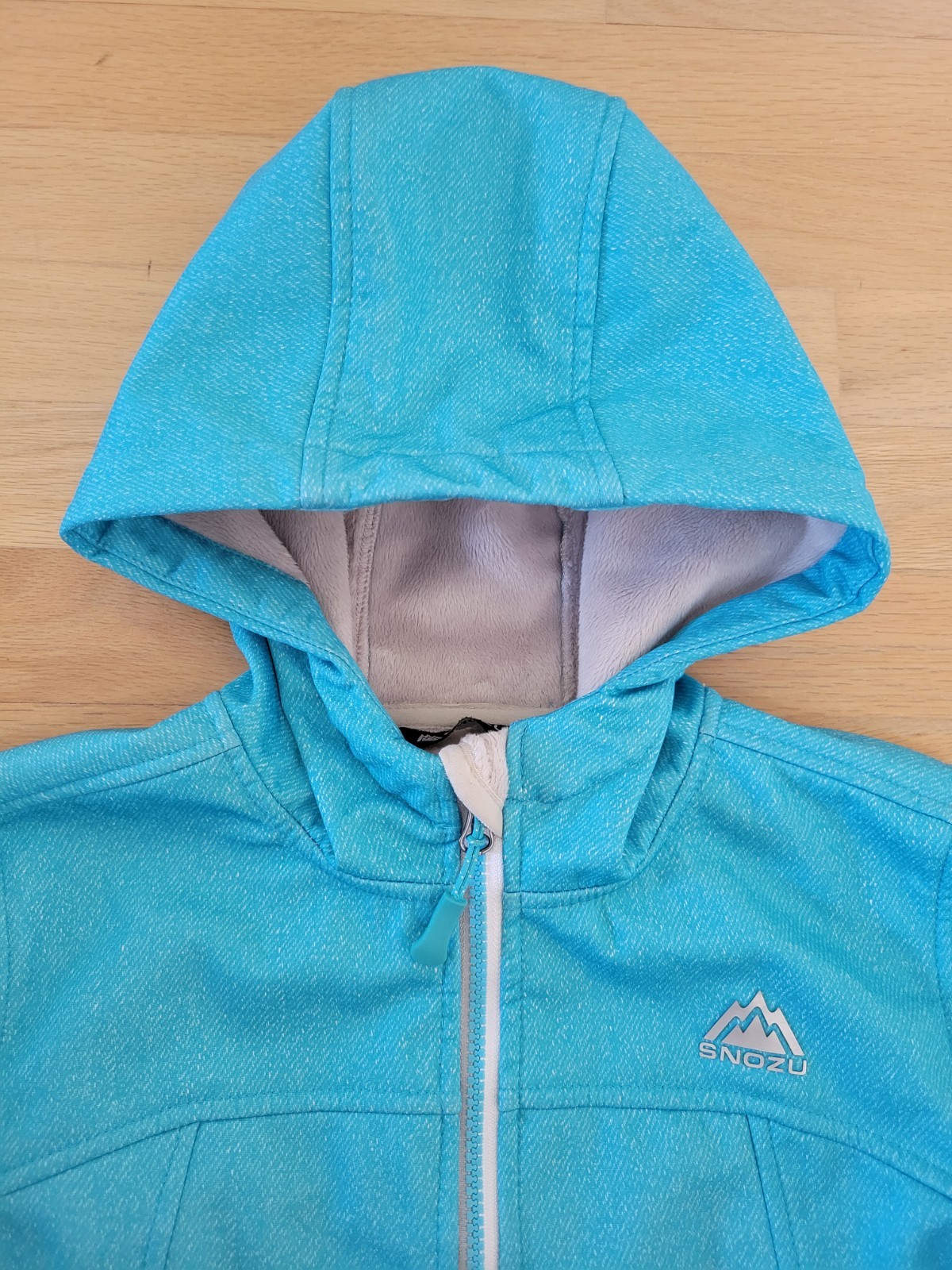 как выглядит Snozu Girls M 10-12 Light Blue Full Zip Fleece Lined Nylon Shell Hooded Jacket фото