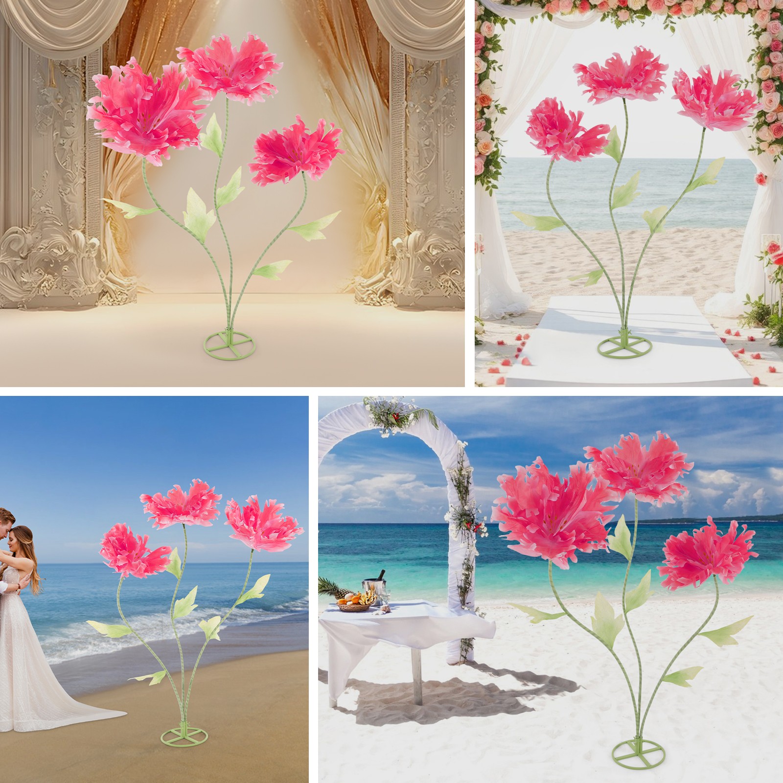 74.8in Giant Artificial Flowers 3 Heads Wedding Party Decoration Stand with Base