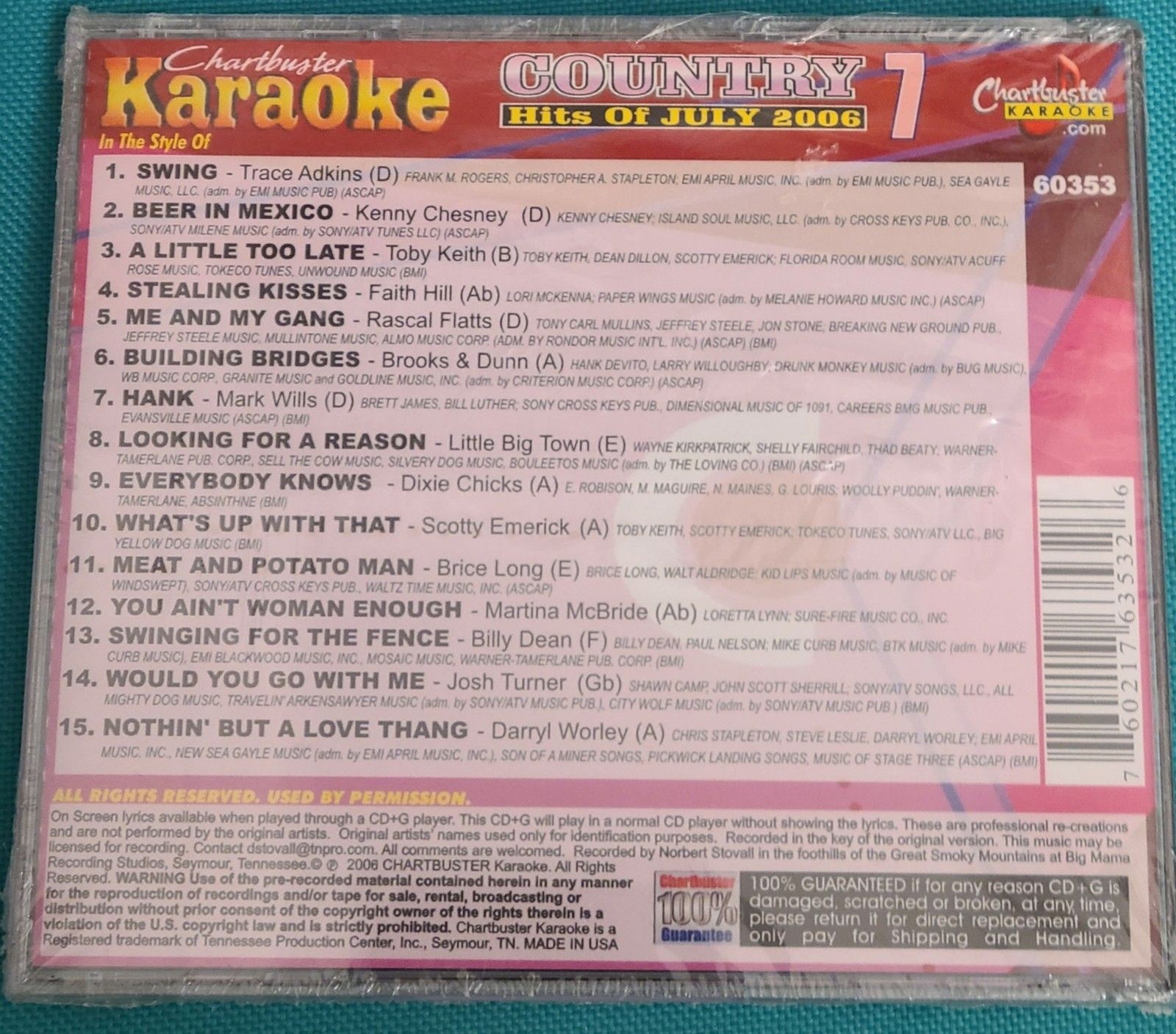 Adkins Brooks Dunn, Keith Flatts Karaoke CDG Chartbuster CD60353 Country 2006