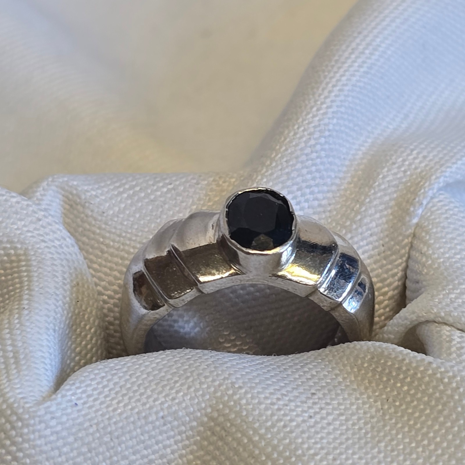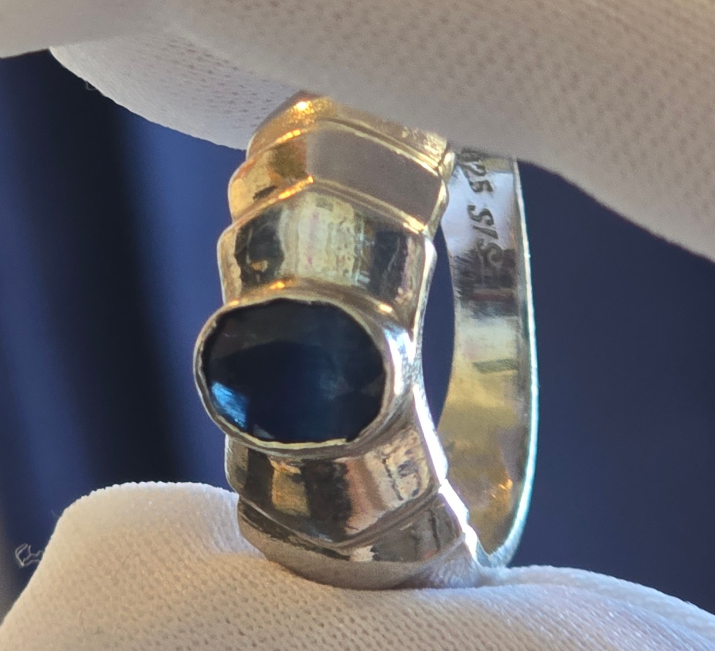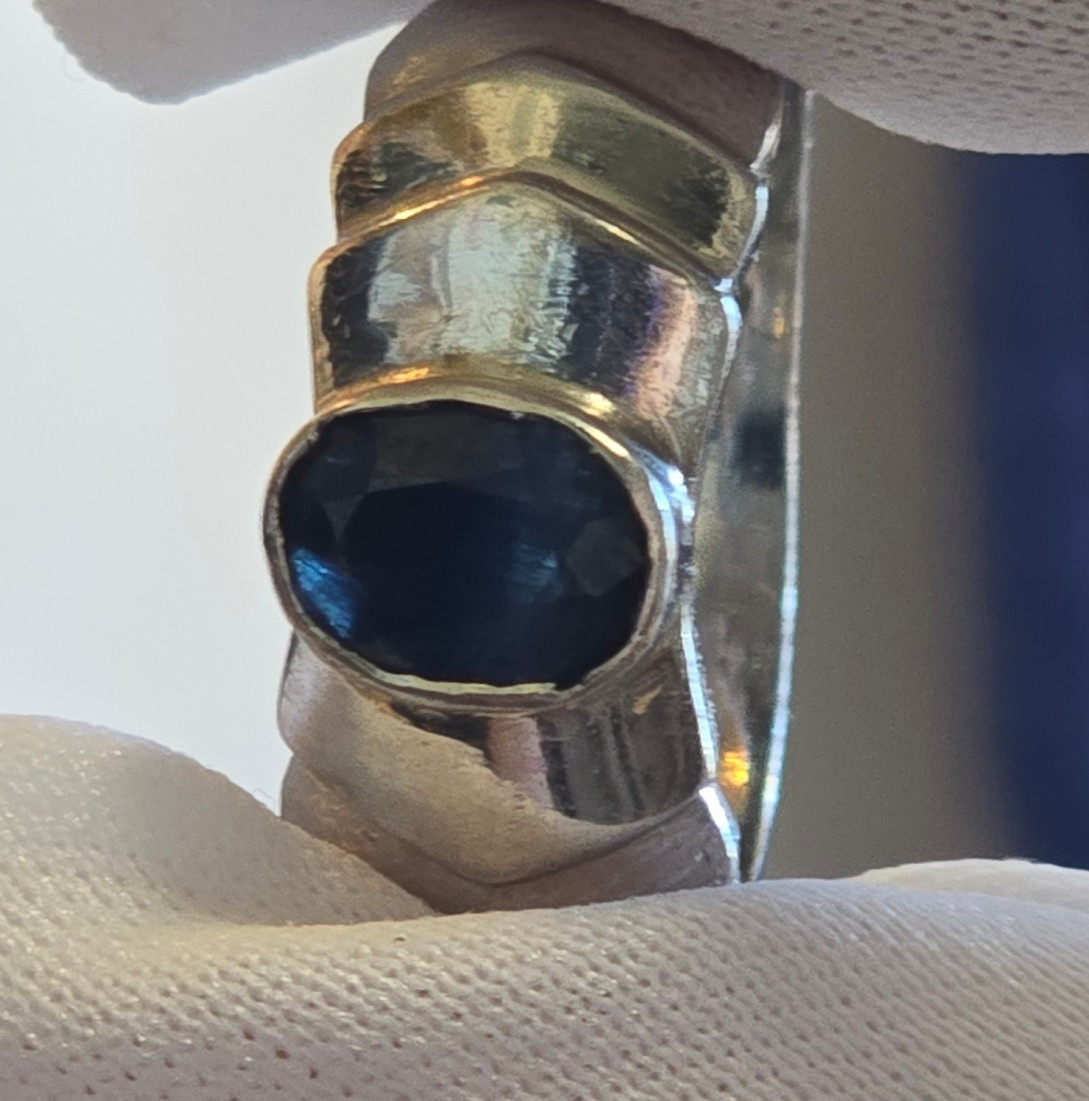 как выглядит Sterling Silver Ring 4.26g Fine Jewelry Size 7 Band Dark Blue Stone READ фото