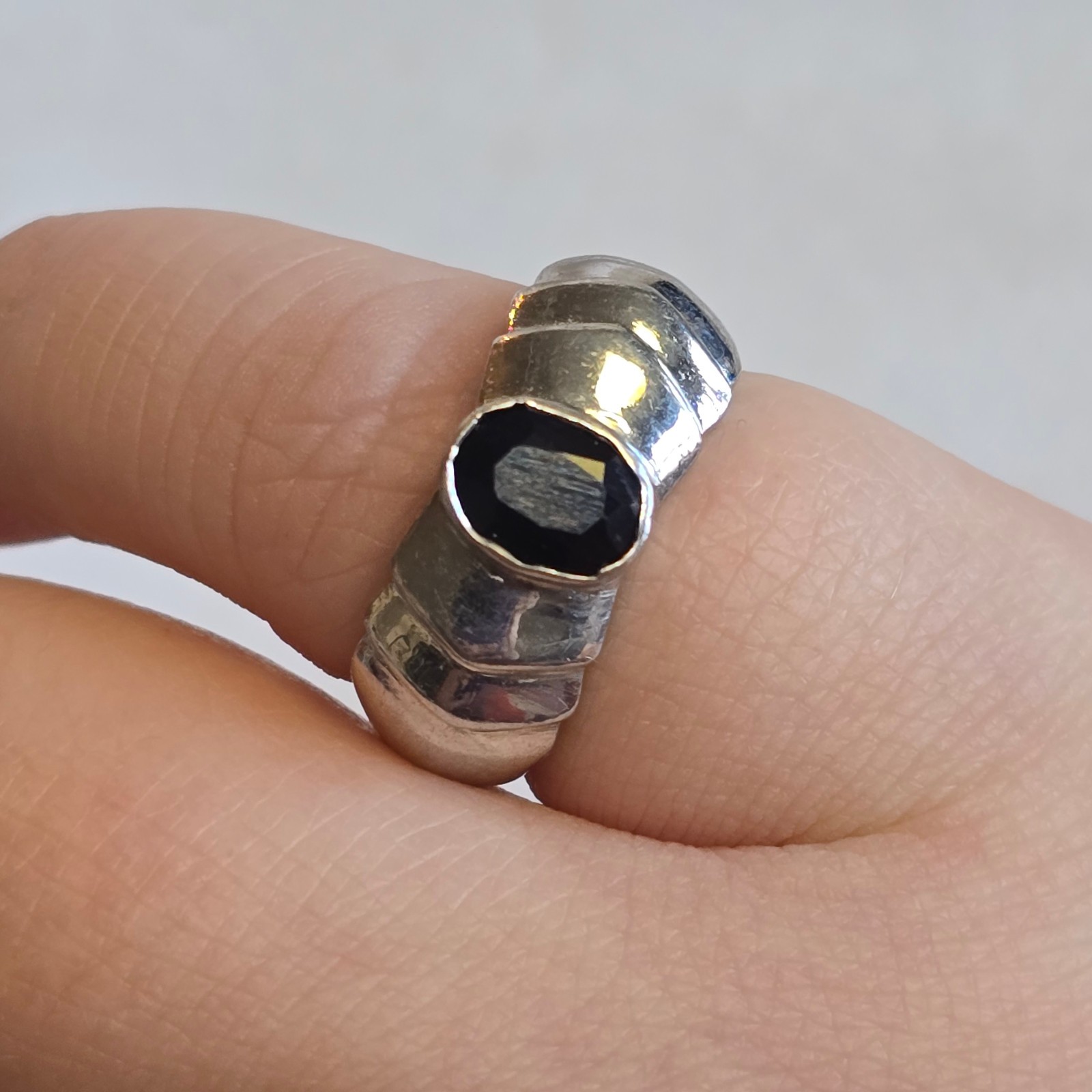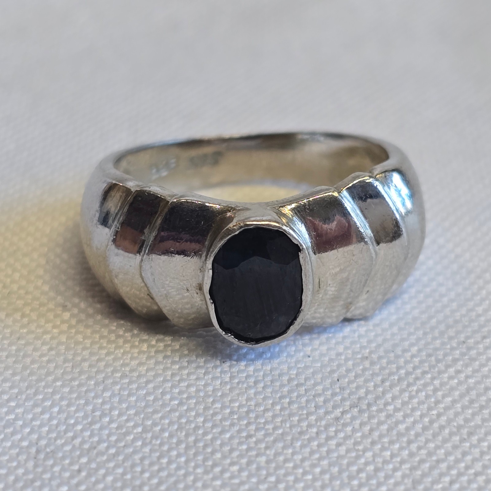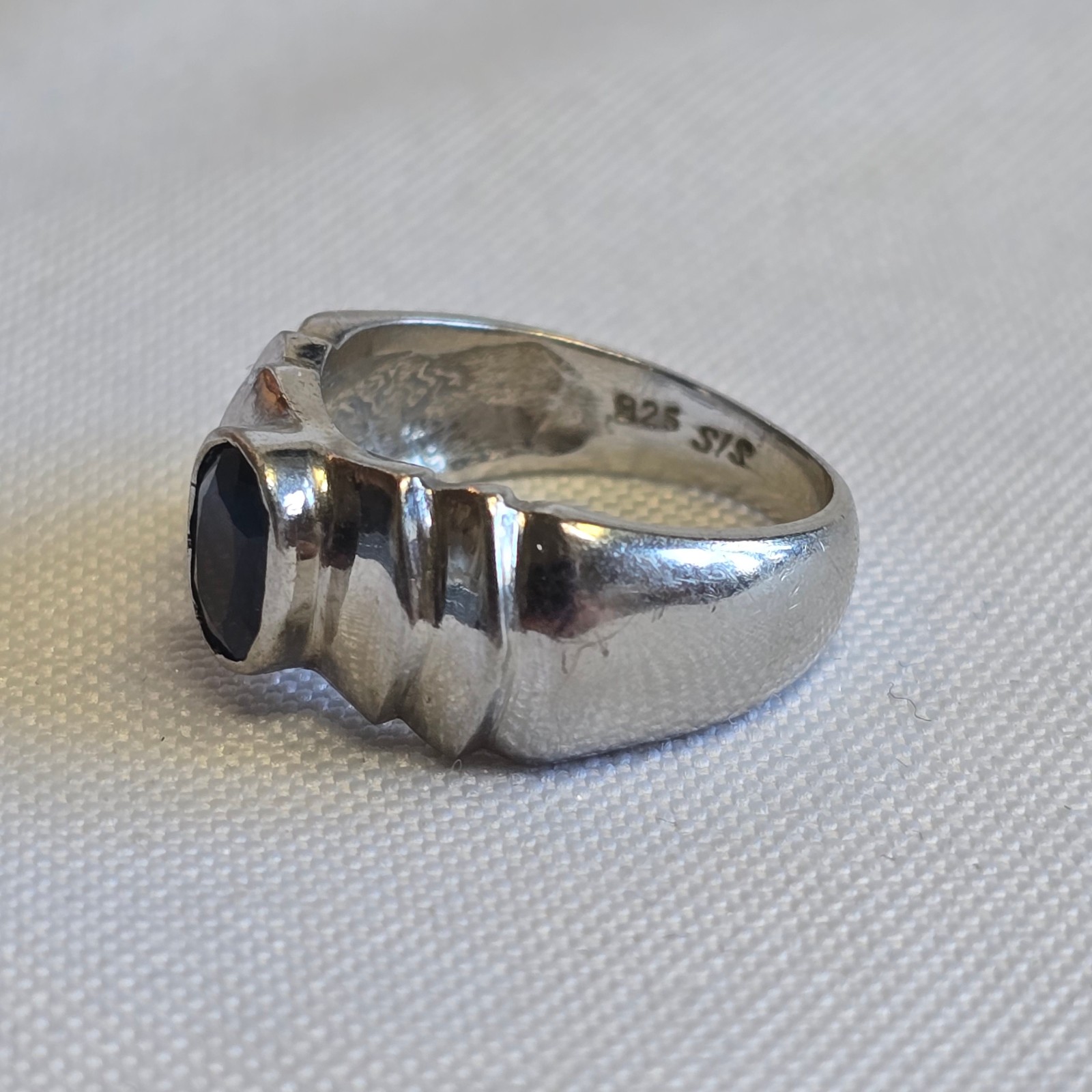 Sterling Silver Ring 4.26g Fine Jewelry Size 7 Band Dark Blue Stone READ