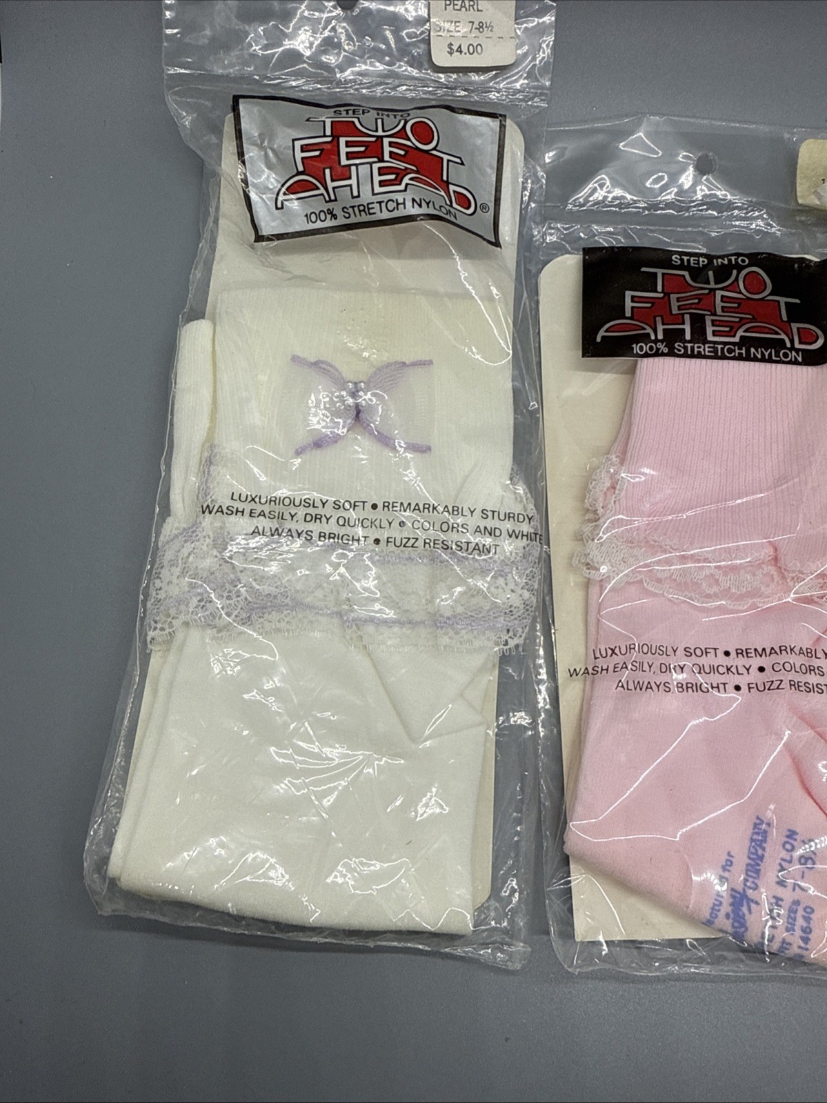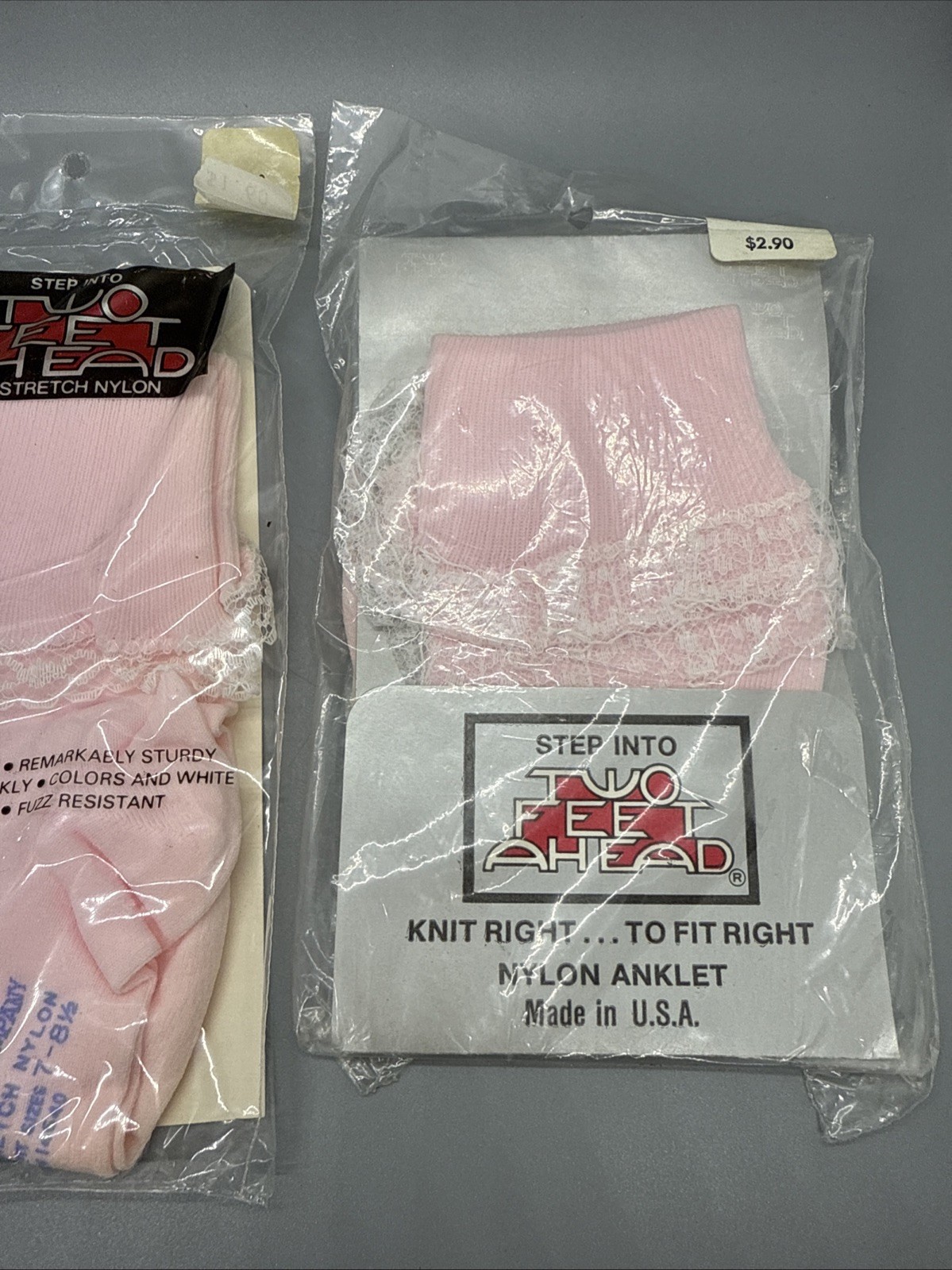 Vintage Frilly 90s Anklets Socks Girls 7-8.5 Pastel Nylon Lace Ruffle Cuff USA