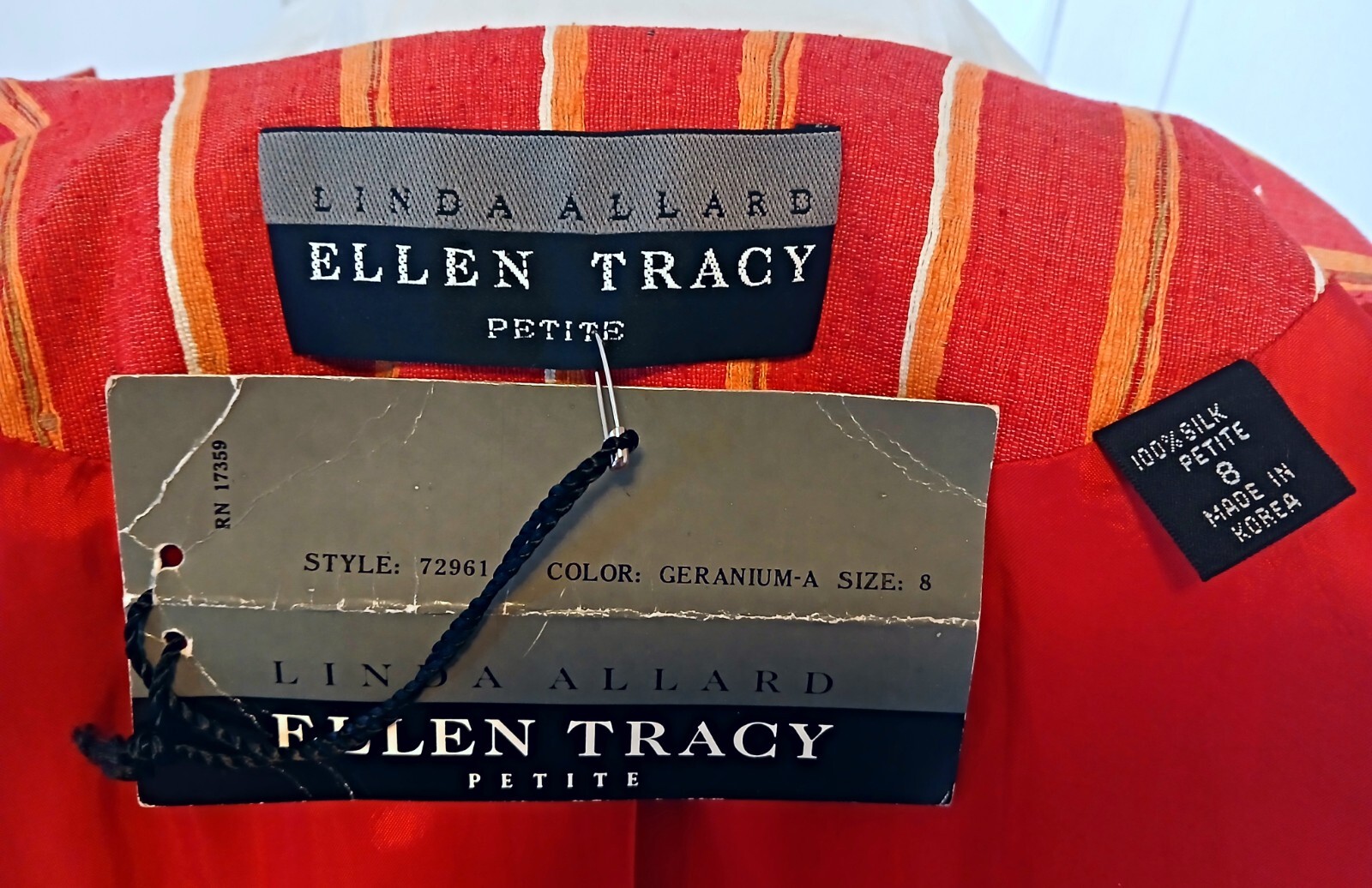 Vtg 80s w/Tag Linda Allard Ellen Tracy 8P Striped Tunic Jacket Missing 1 Button