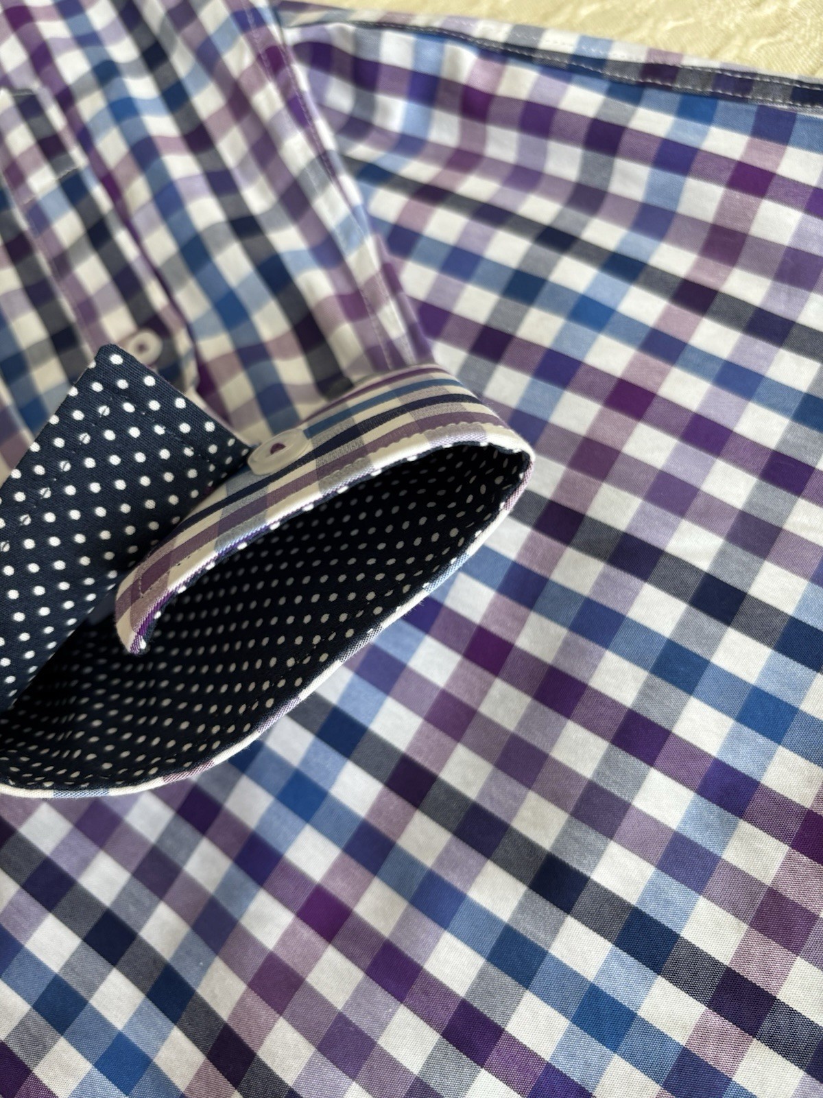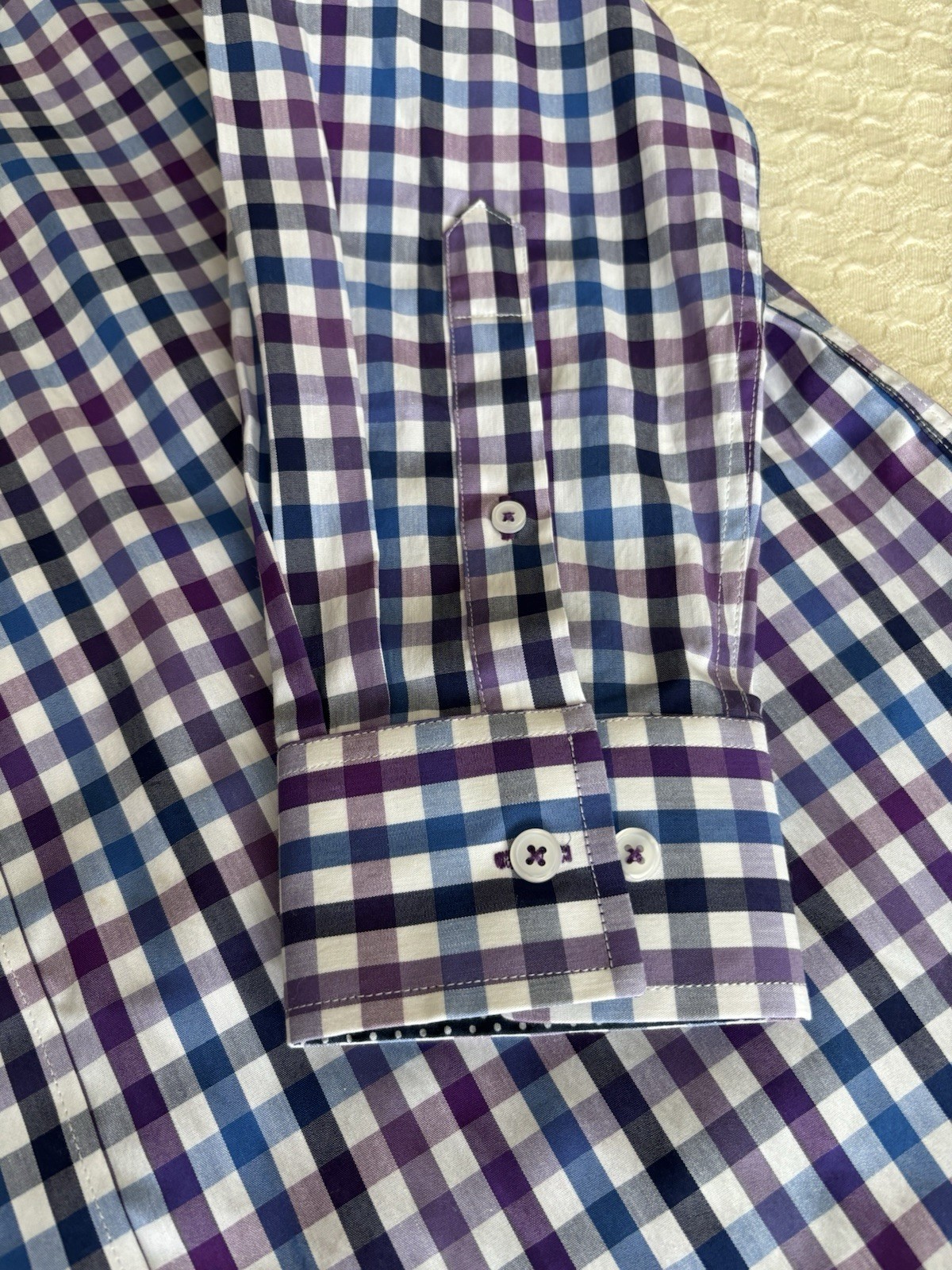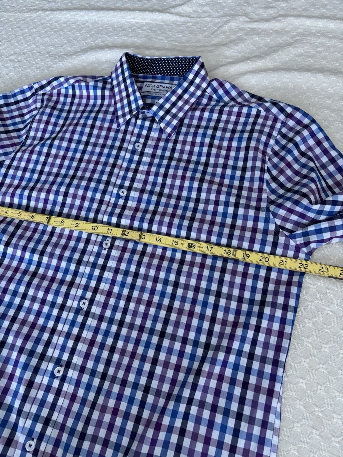 как выглядит Nick Graham Stretch Modern Fit Mens L Blue/Purple Plaid Long Sleeve Shirt фото