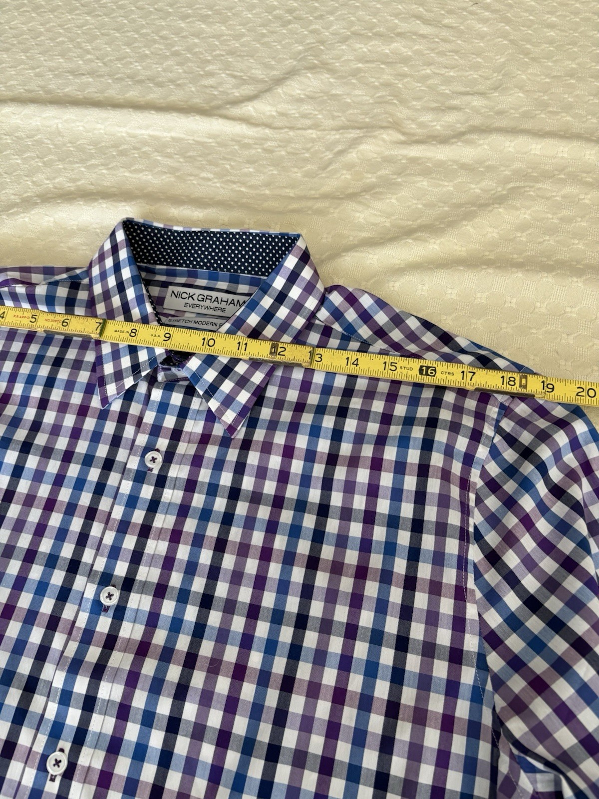 Nick Graham Stretch Modern Fit Men's L Blue/Purple Plaid Long Sleeve Shirt