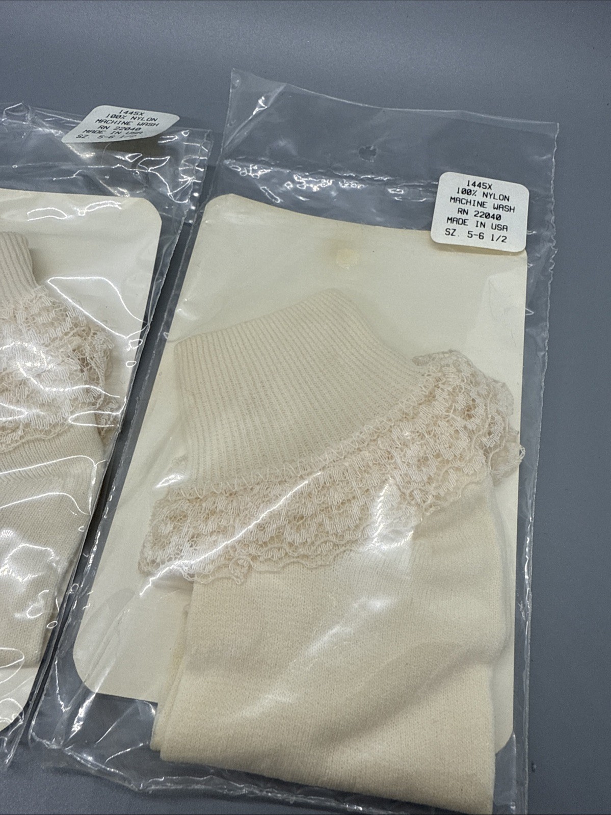 Vintage Frilly 90s Anklets Socks Girls 5-6.5 Toddler Nylon Lace Ruffle Cuff USA