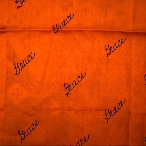 Vintage Italian Orange Square Scarf with Grace Print