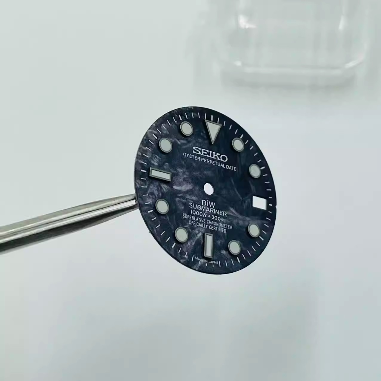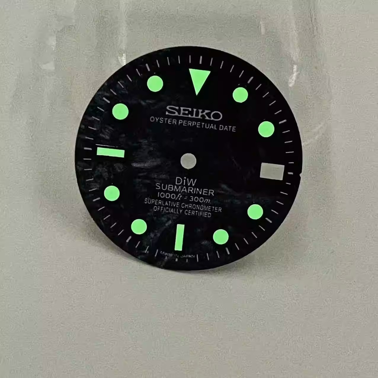 как выглядит For Seiko 28.5mm Watch Dial Green Luminous Fit NH35 NH36 Movement Carbon Black фото