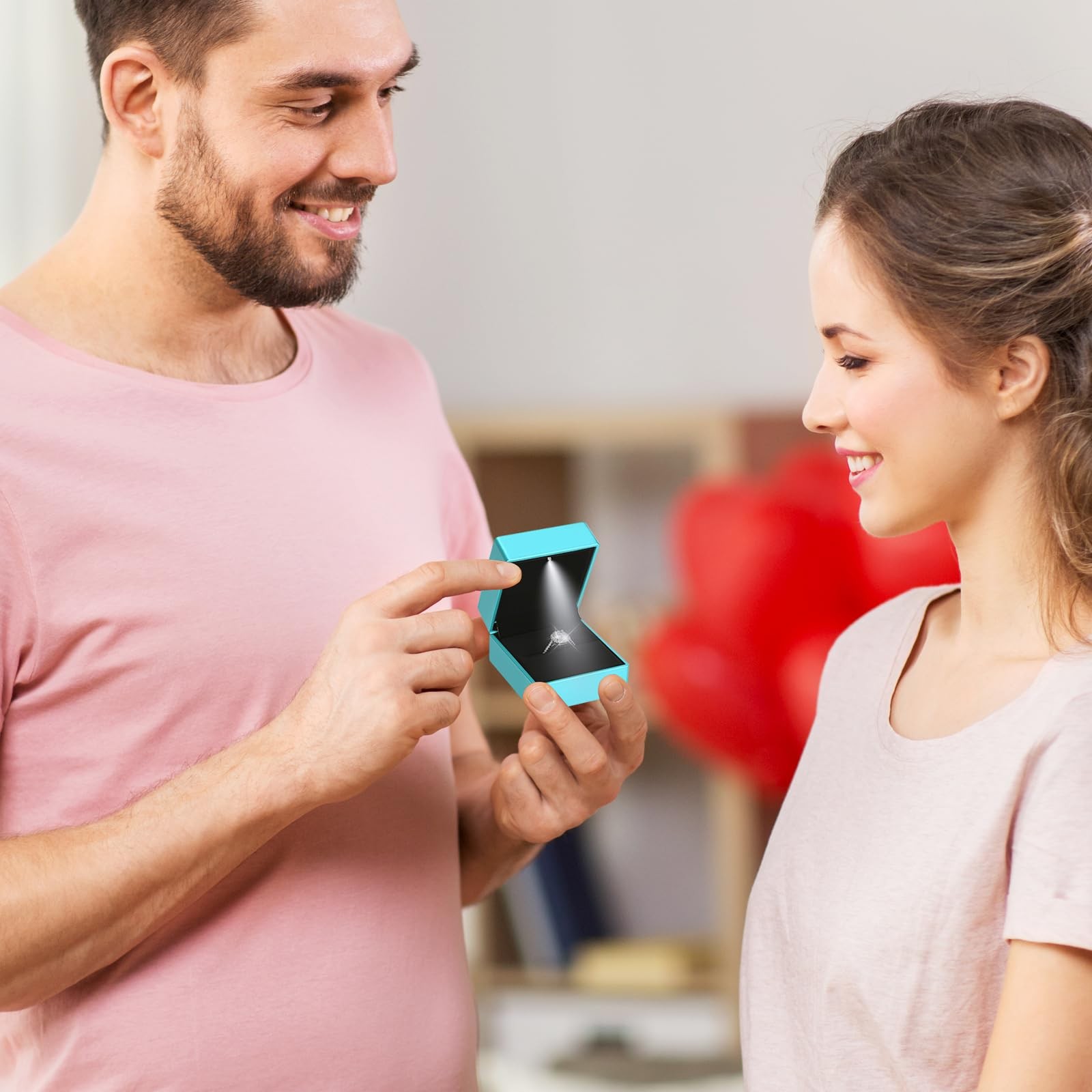 как выглядит LETURE 2 Pieces Ring Earring Gift Box with LED light, Elegant Daphne Blue фото